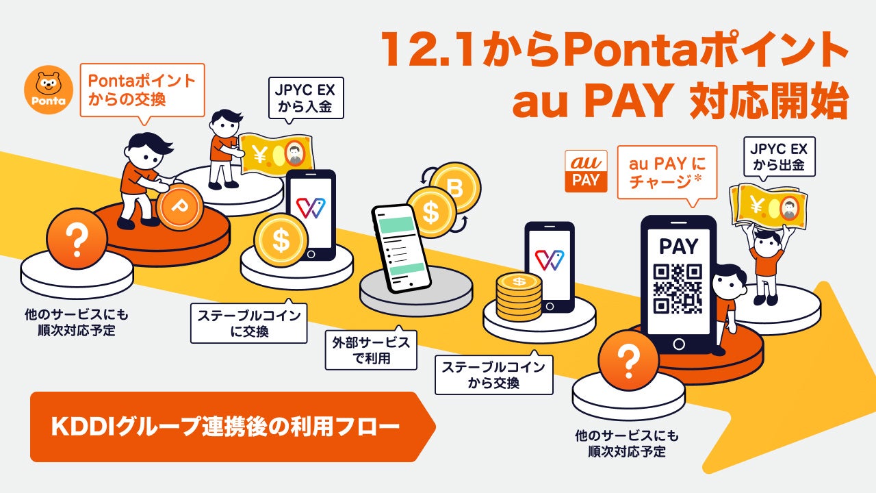 本提携の第1弾として、累計100万ダウンロードのHashPort Walletと、約1.2億人の会員を持つPonta及び約3,900万人のユーザーを持つau PAYが連携し、以下の協業を実施します。