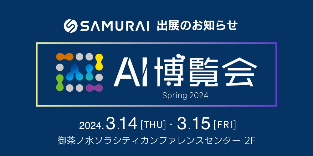 プログラミングスクール「SAMURAI ENGINEER(侍エンジニア)」を運営する株式会社SAMURAIは、2024年3月14日(木)〜3月15日(金)に開催される「AI博覧会 Spring 2024」に出展いたします。
