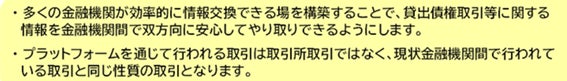① 貸出債権取引やシンジケートローン組成のための他の金融機関への打診ツール