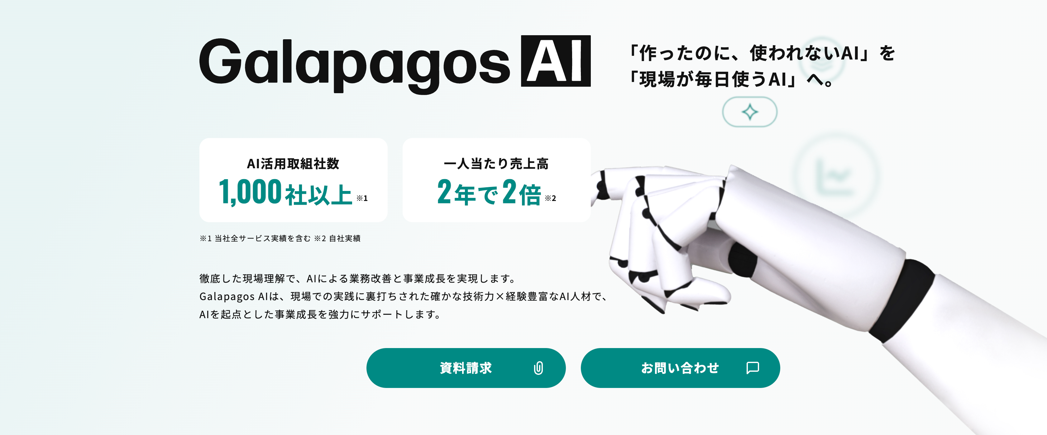 株式会社ガラパゴスは、AI関連事業を「Galapagos AI」としてブランド統合し、コーポレートサイトをリニューアルしました。過去の実績を基に、現場定着型のAI導入支援を強化します。