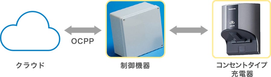 スマート充電制御ユニット:OCPP対応。REXEVのクラウドと連携し、充電制御・最適化を実現します。