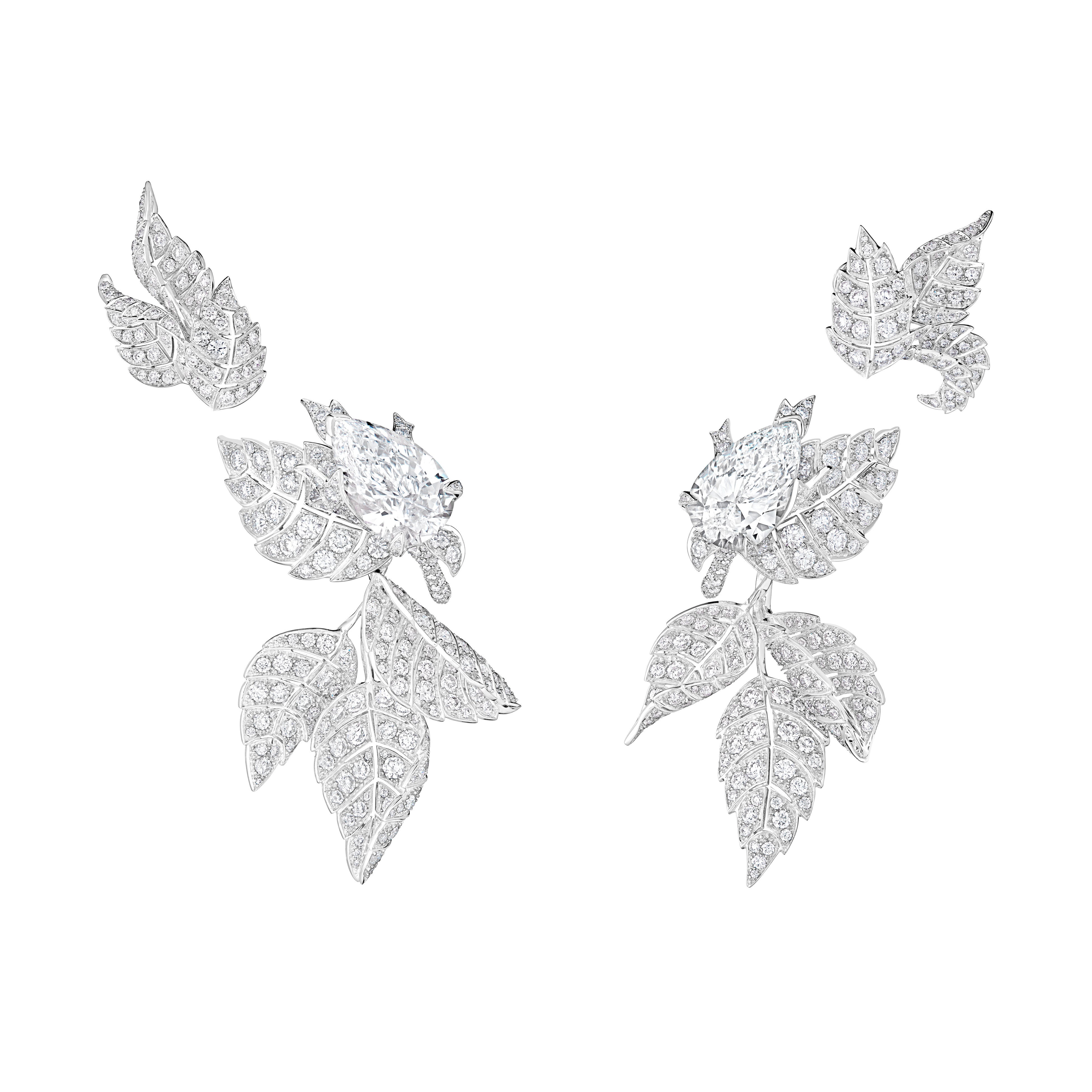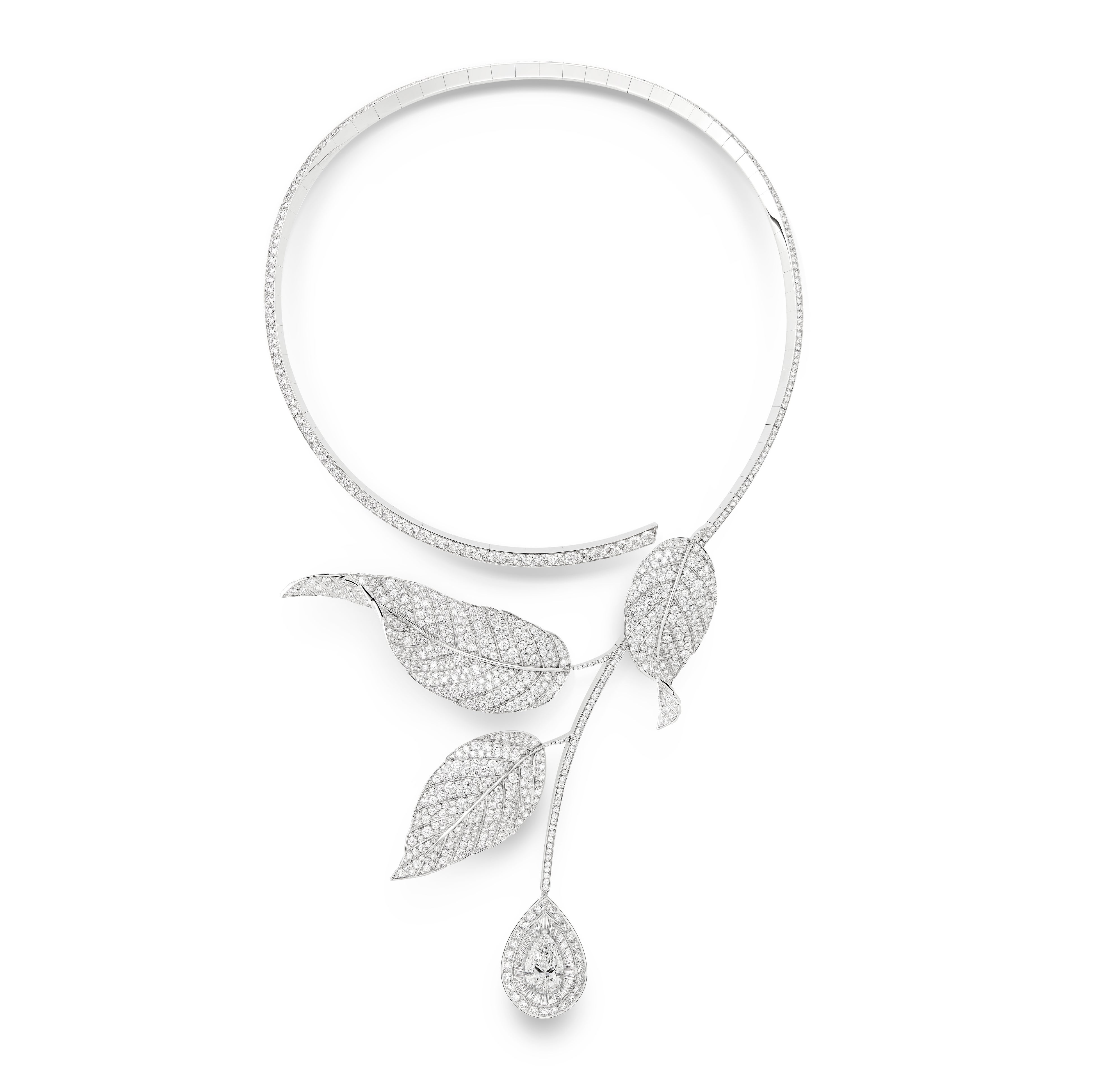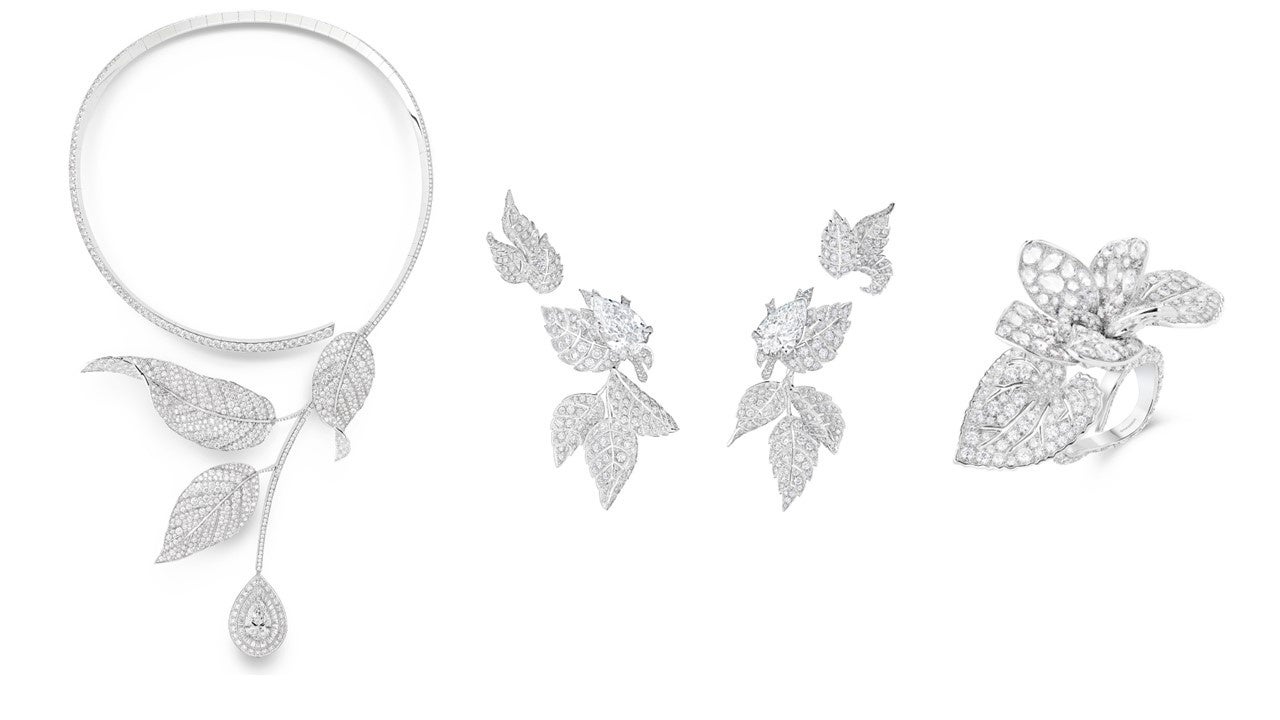 MINAは今年1月に発表されたばかりのハイジュエリーコレクション「UNTAMED NATURE (手つかずの自然)」から、ロジエ(バラの木)の6カラットのペアシェイプダイヤモンドをバゲットカットとラウンドカットダイヤモンドで縁取りしたペンダントトップが印象的なクエスチョンマークネックレス、タイプⅡAのペアシェイプダイヤモンドをバラの花のつぼみのようにセットしたイヤリング、そして花びらにはローズカットのダイヤモンド、葉にはラウンドカットダイヤモンドをセットし、ダイヤモンドの様々な輝きを楽しめるシクラメンのリングを着用しました。