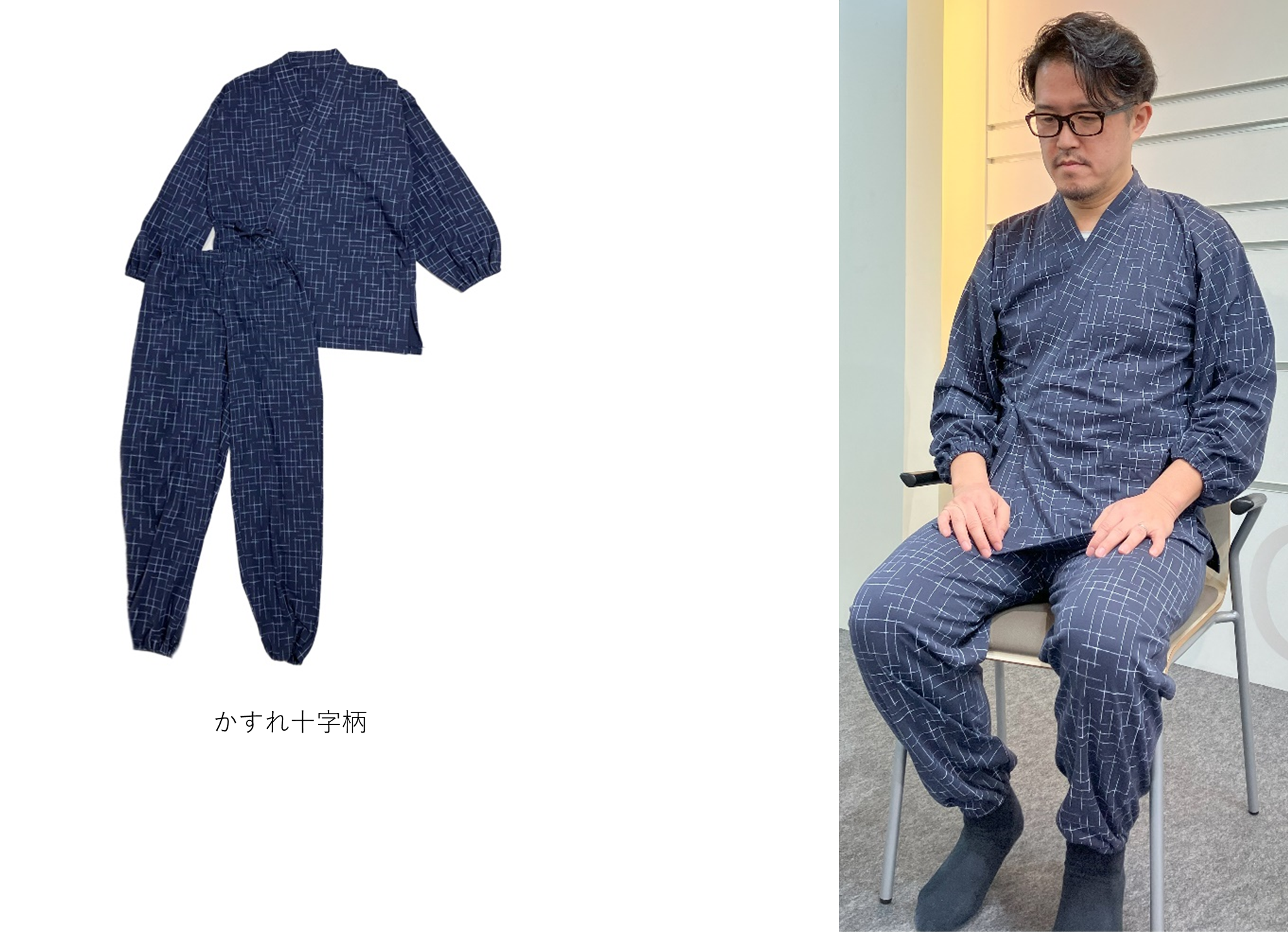 「ME KAIGO 甚平風介護パジャマ」(かすれ十字柄)