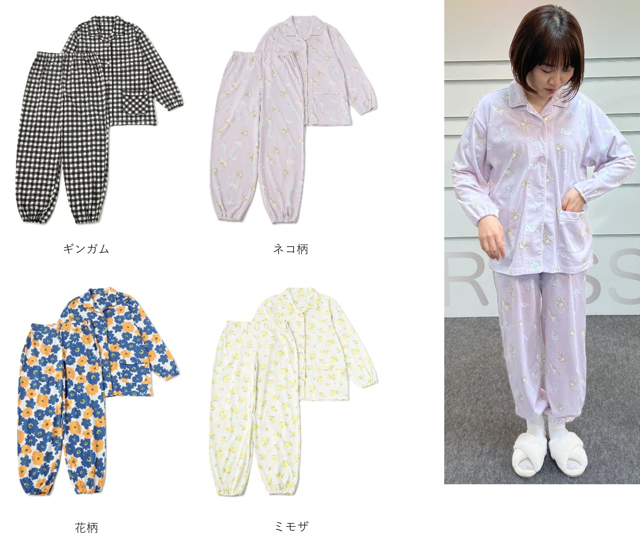 「ME KAIGO 襟付き介護パジャマ」(ギンガム、猫柄、花柄、ミモザ)