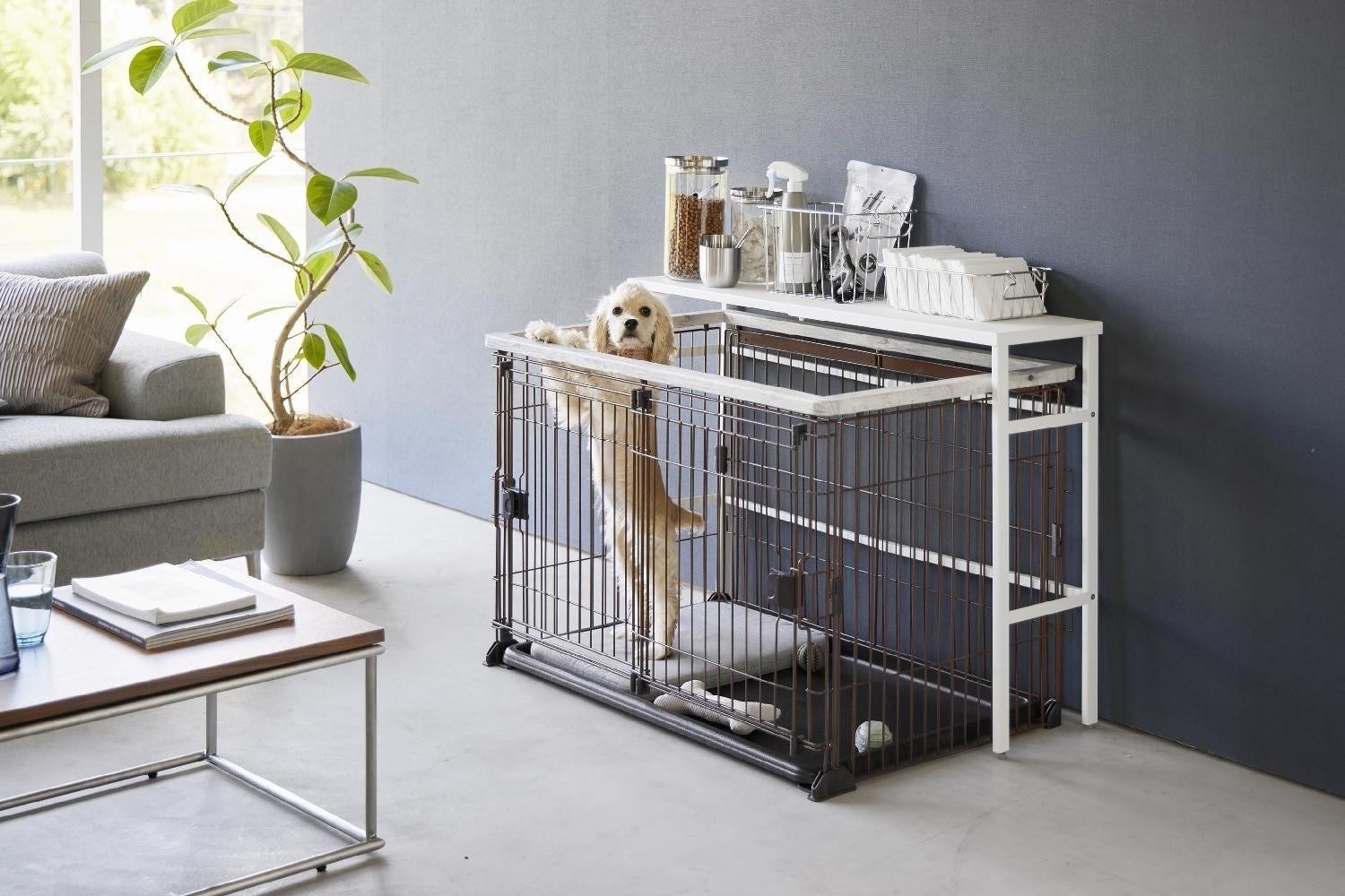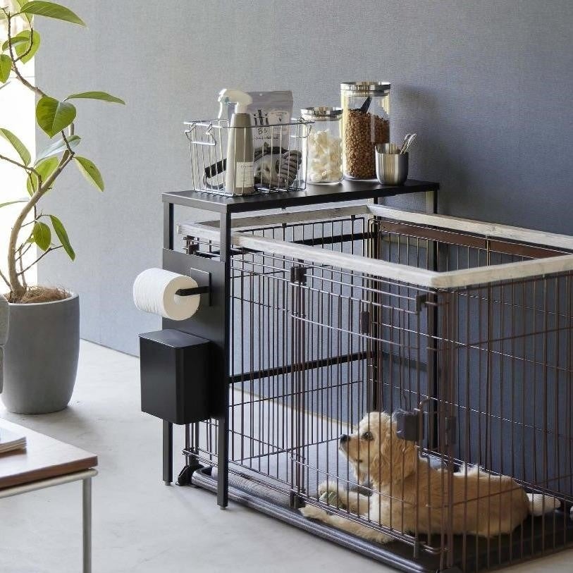 ペットケージ上のデッドスペースを有効活用できるラックや石こうボード壁に取り付けできるタブレットホルダーなど新商品発売。