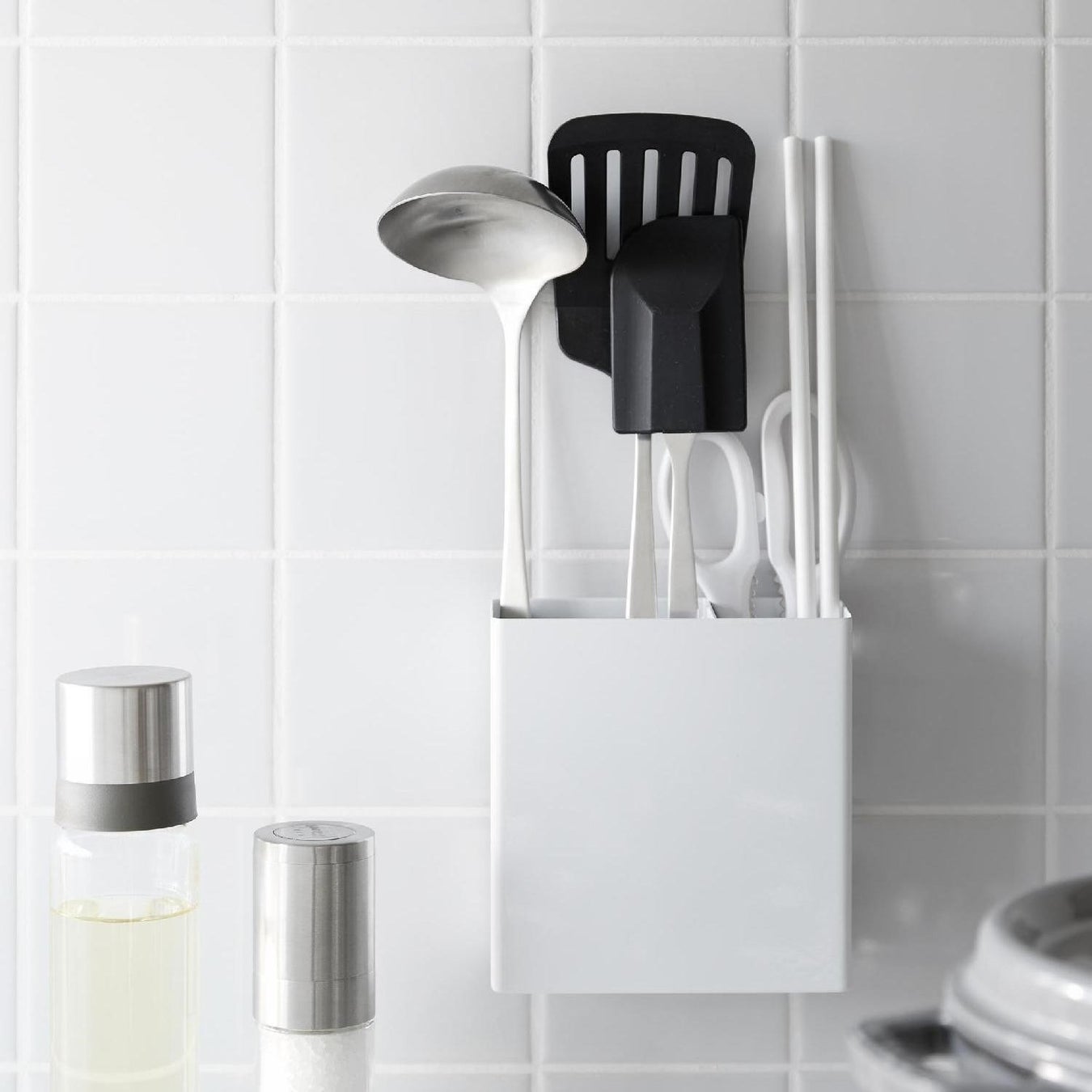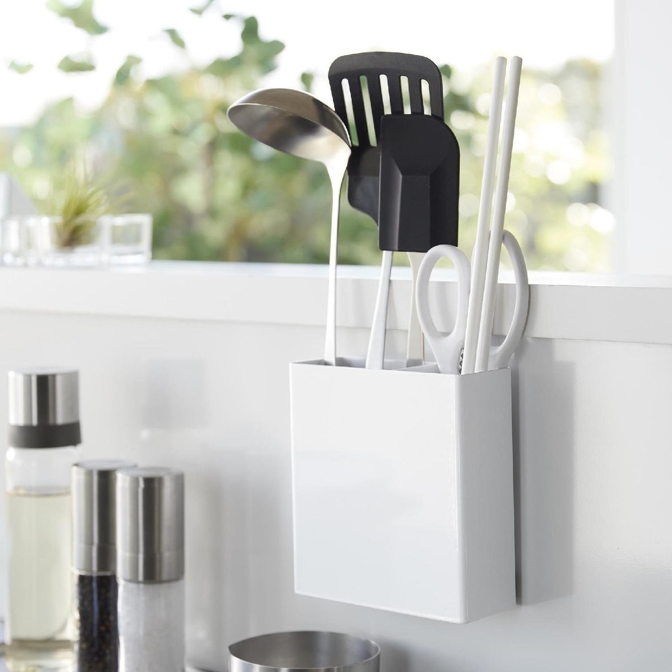 フィルムフックでお好みの位置に簡単に取り付けできるキッチンツールホルダー。