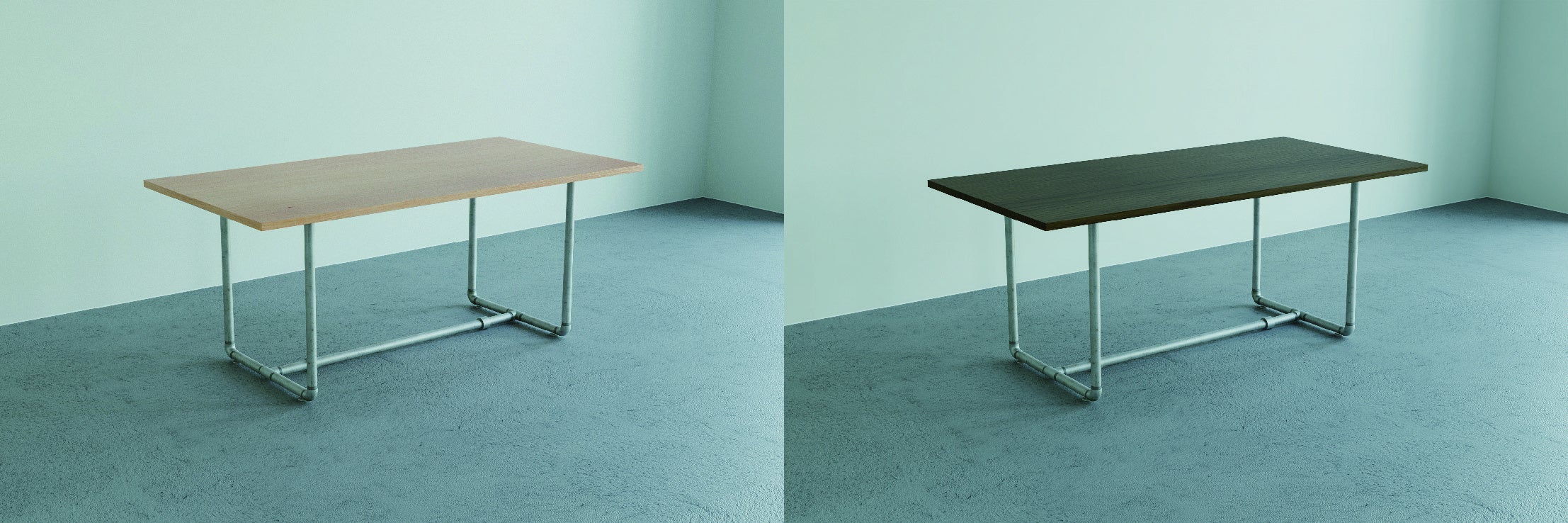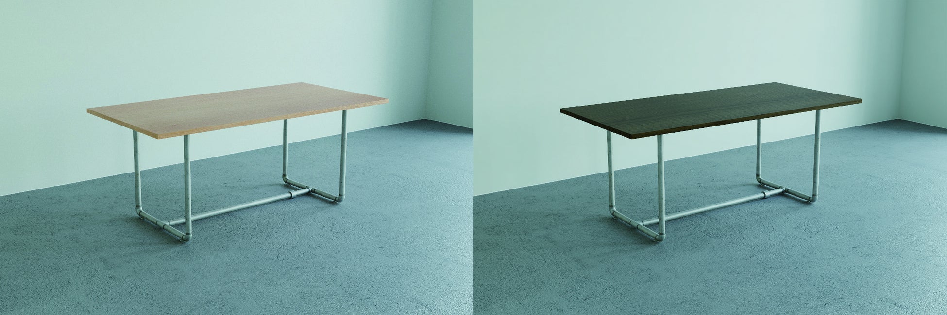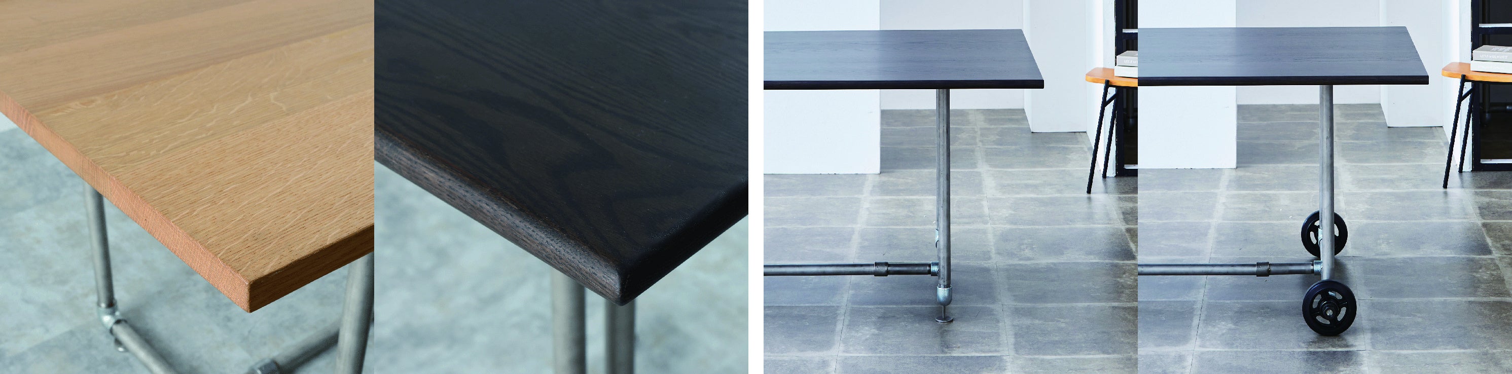 「FACTORIAL(ファクトリアル)」シリーズは、無垢材を贅沢に使った天板と、実際に公共の水利施設等でも使用されるステンレス鋼管を、国内メーカーの職人の手によって丁寧に加工されたインダストリアル家具です。