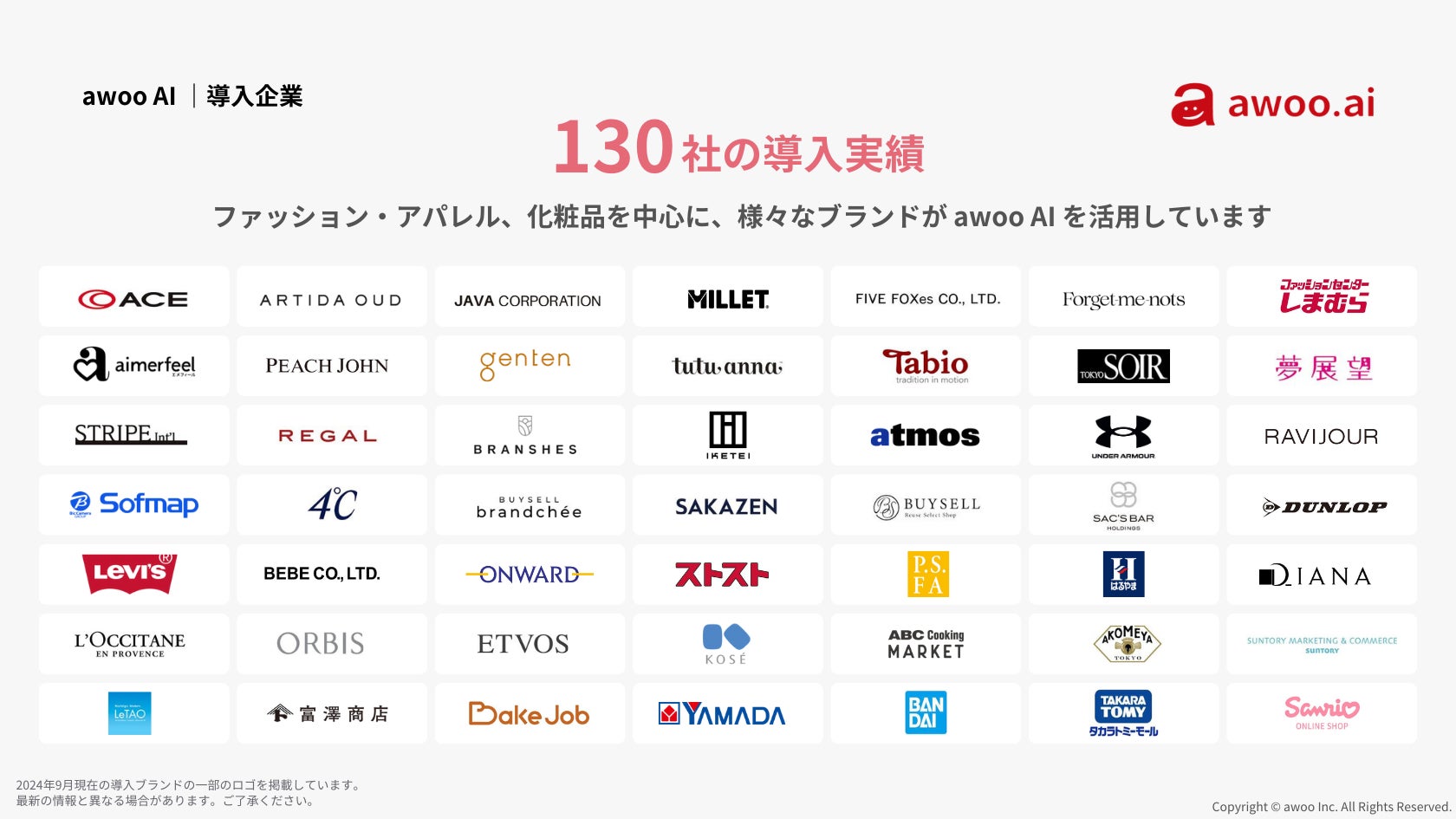 現在まで『awoo AI』は、アパレル、化粧品・スキンケア、食品、家電・インテリアなど130を超える多品目ECサイトに導入され、サイト回遊率やCVRの大幅な改善を実現しています。