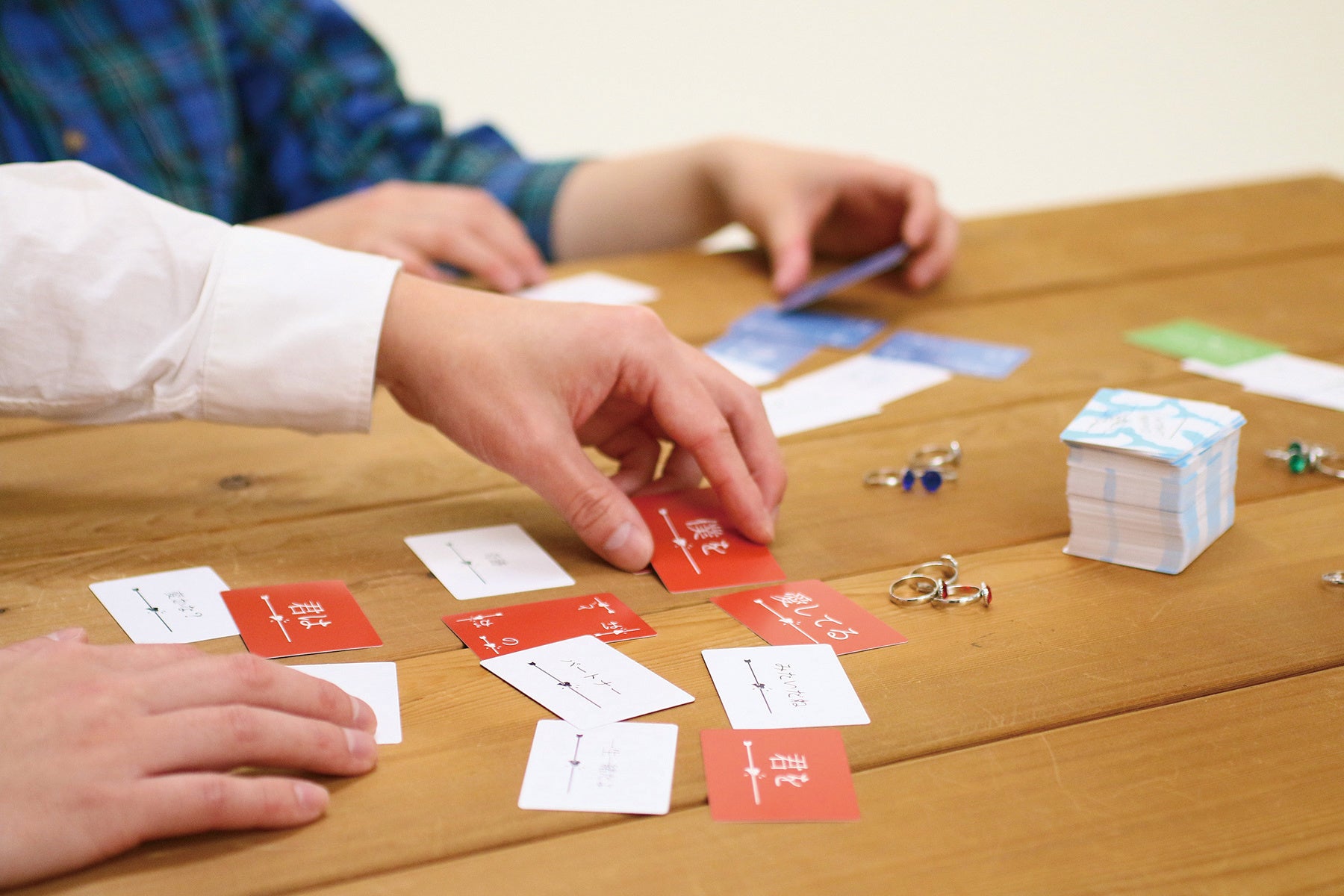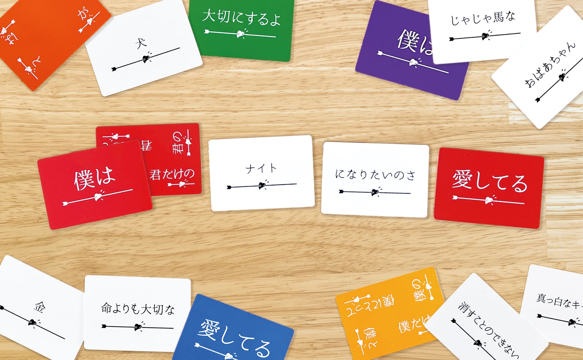 ルールはとっても簡単。親プレイヤーがゆっくり10数える間に、配られた手札を自由に組み合わせて、プロポーズの言葉を作り、親プレイヤーに愛の告白をしましょう!