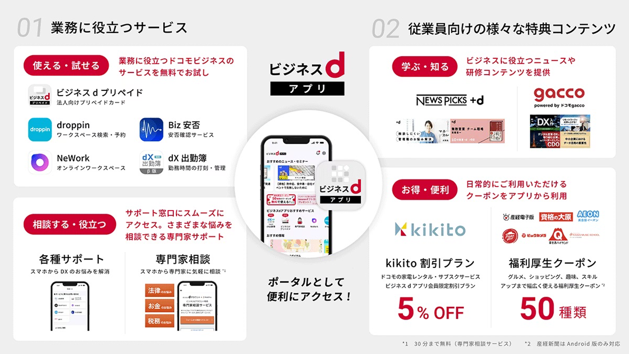 「ビジネスdアプリ」に関する詳細は、下記をご確認ください。