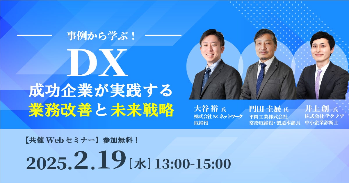 株式会社テクノア(本社:岐阜県岐阜市、代表取締役:山﨑 耕治)は、株式会社NCネットワーク(本社:東京都台東区、代表取締役社長:内原 康雄)と共同で、中小製造業の皆さまに向けて、2025年2月19日(水)にオンラインイベントを開催いたします。