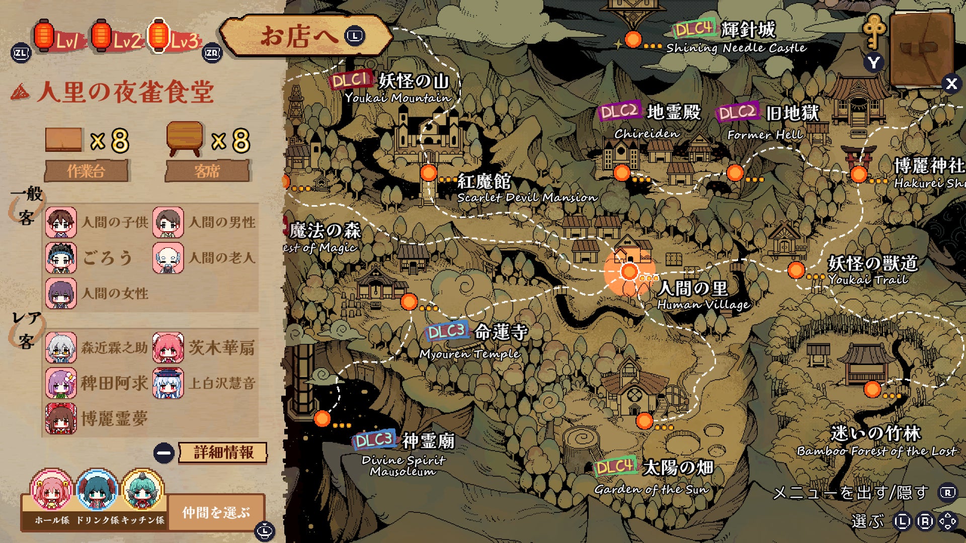 『とうほう夜雀食堂』Nintendo Switch™版は、Steam版におけるダウンロードコンテンツを全て集約、日本語への完全対応を施して、今まで以上の遊びやすさとともにお届けいたします。