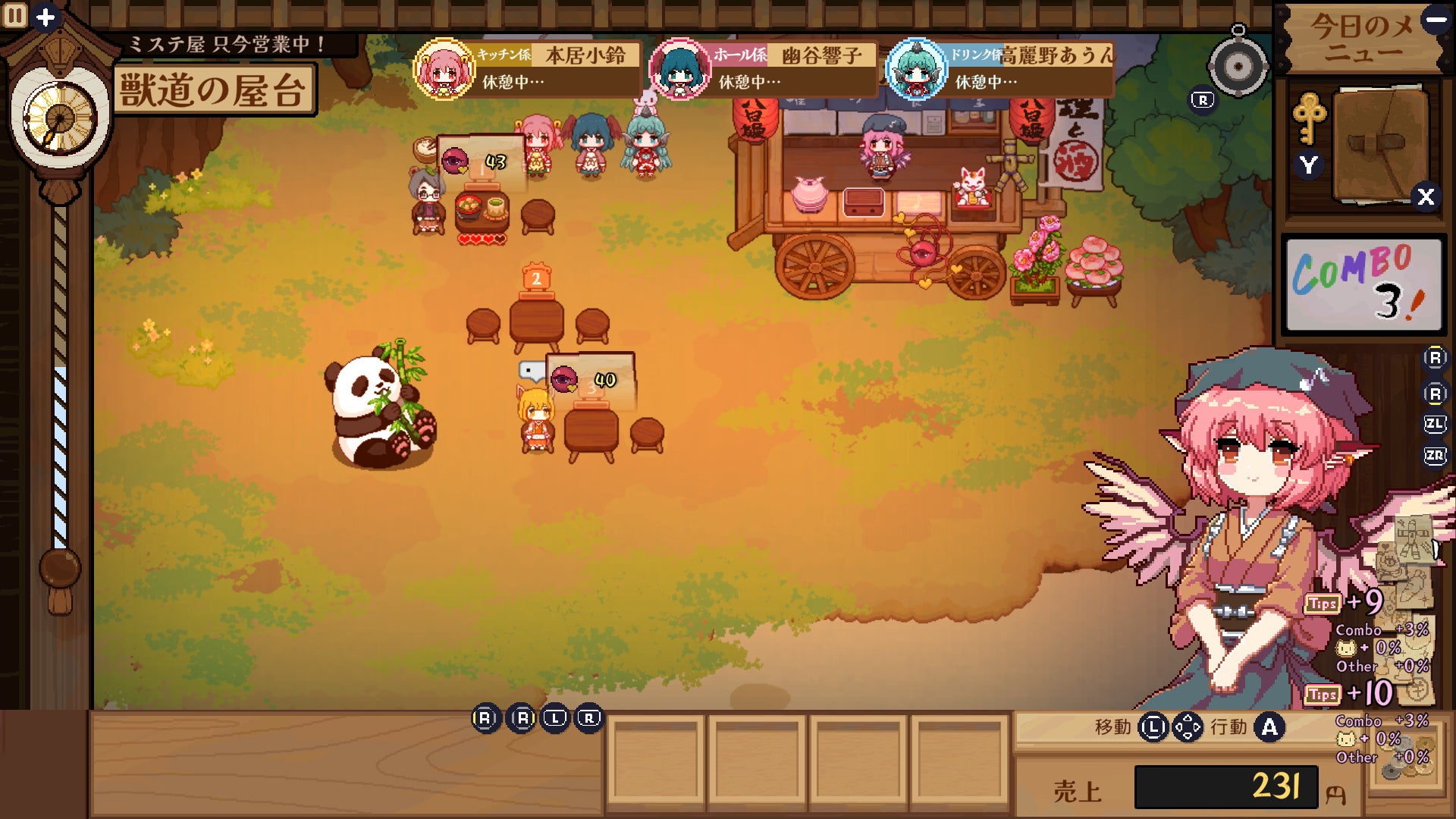 ▲ 特定のお客さんを満足させるとスペルカードで援護をしてくれます!