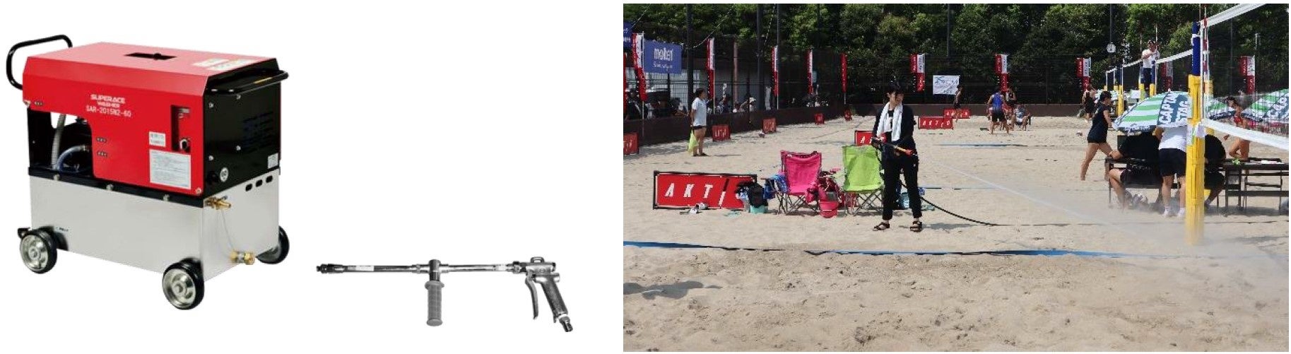 ミスト噴霧で現場環境を快適にします。微細な水滴を空中に噴霧することで、周囲の気温を下げることができ、暑さ対策として効果的です。ミスト噴霧により、マイナスイオンが発生し、周辺空気環境の改善効果もあります。