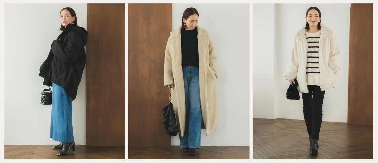 人気モデル辻元舞さんが纏う、Re:EDIT(リエディ)2023年冬の最新LOOK第1弾をリリース!30代~40代の大人が着映える本格アウター、ニットがラインナップ