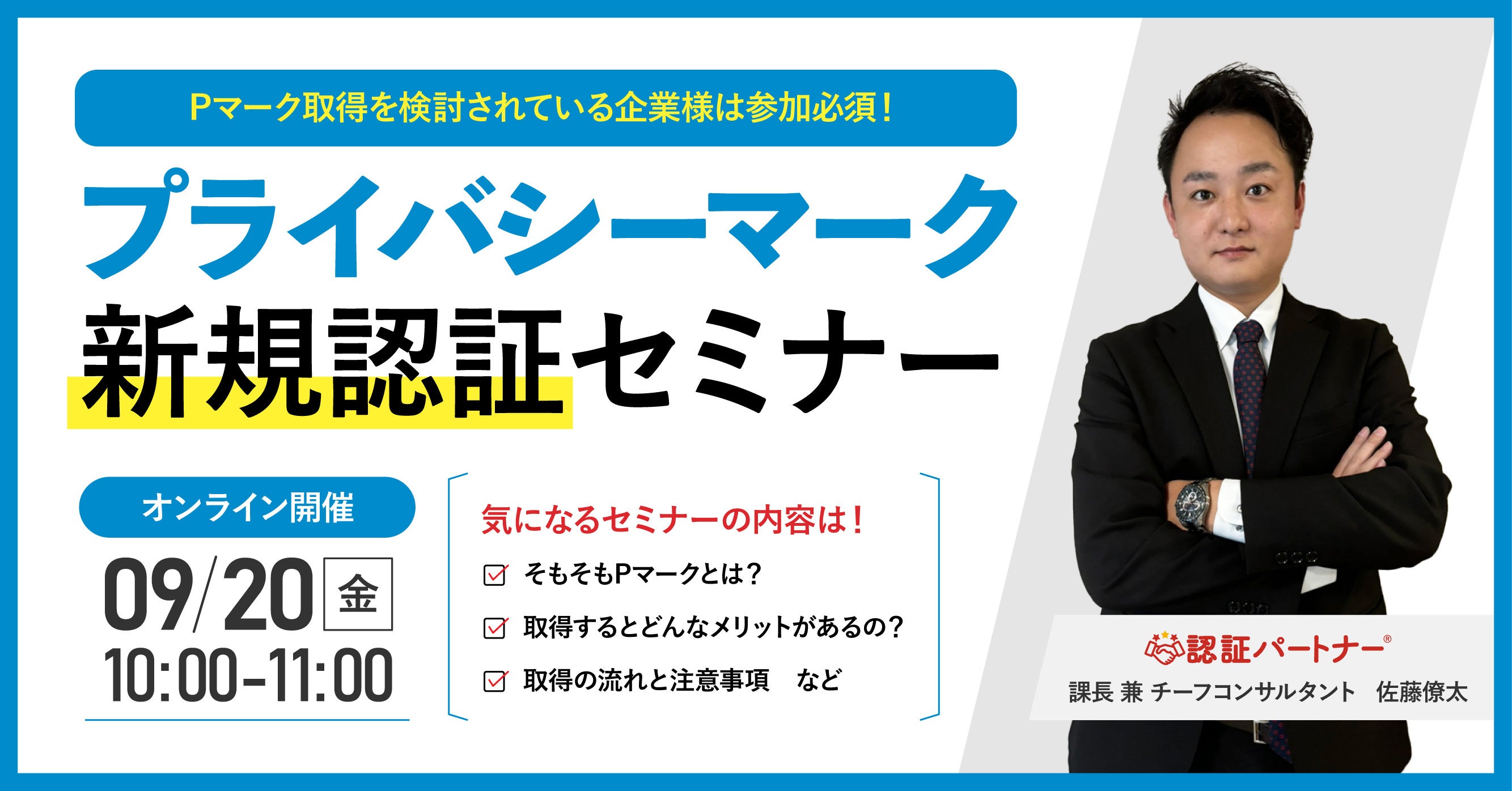 【無料ウェビナー】『プライバシーマーク(Pマーク)新規認証セミナー』9/20(金)10:00-11:00開催