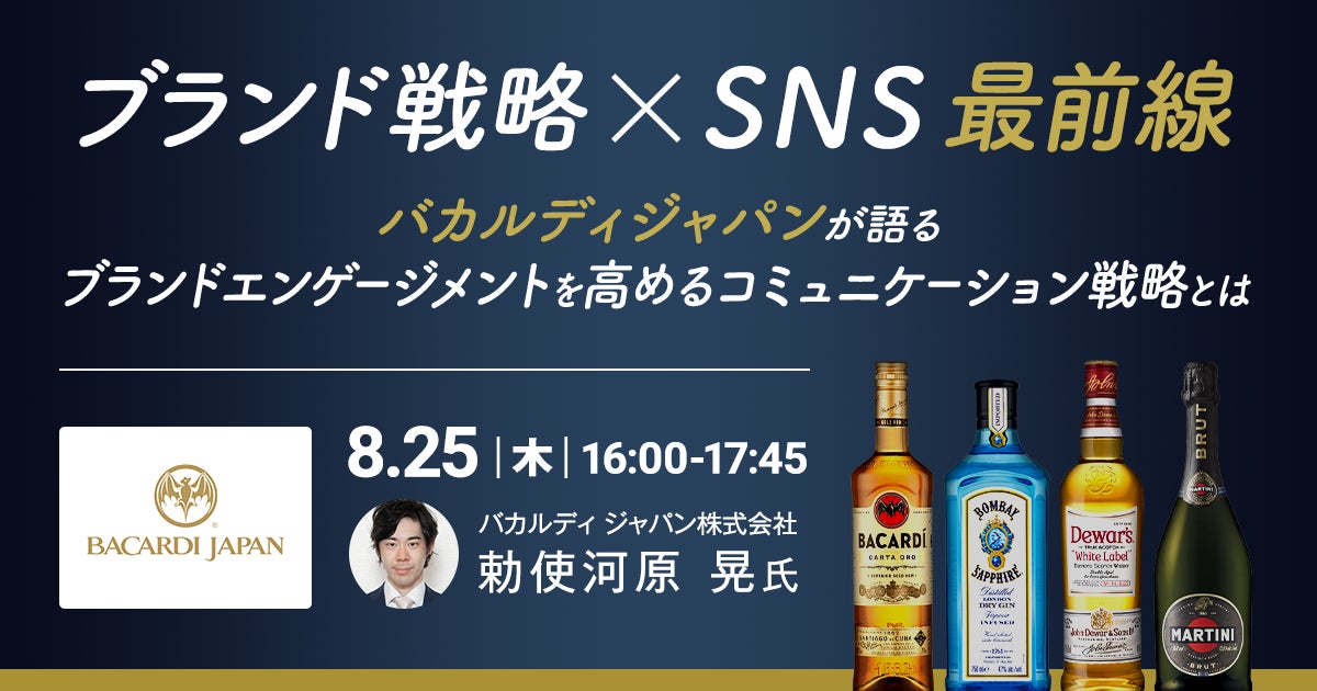 企業のマーケティングDXを支援するアライドアーキテクツ株式会社(東京都渋谷区、代表取締役社長 CEO:中村壮秀、証券コード:6081)でSaaS事業を展開するプロダクトカンパニー(カンパニープレジデント:村岡弥真人)は、「バカルディ ジャパンが語る、ブランドエンゲージメントを高めるコミュニケーション戦略とは」をテーマにしたオンラインセミナー「ブランド戦略×SNS 最前線」を8月25日(木)に開催します。