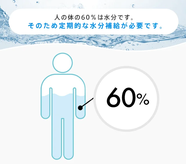 のどの渇きを感じていなくても、適切なタイミングで水を飲むことで、脱水状態から起こるリスクを軽減。