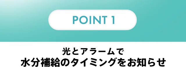 アラーム機能で定期的に少量の水を摂取すれば、1日に必要な水分摂取量を知らず知らずに楽々クリア。 水分補給の習慣化も行えます。