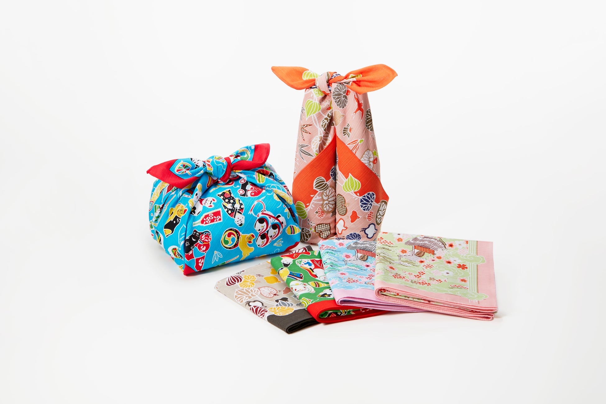 「吉祥花伝 KYOTO」のデザインのうち3柄は風呂敷も用意