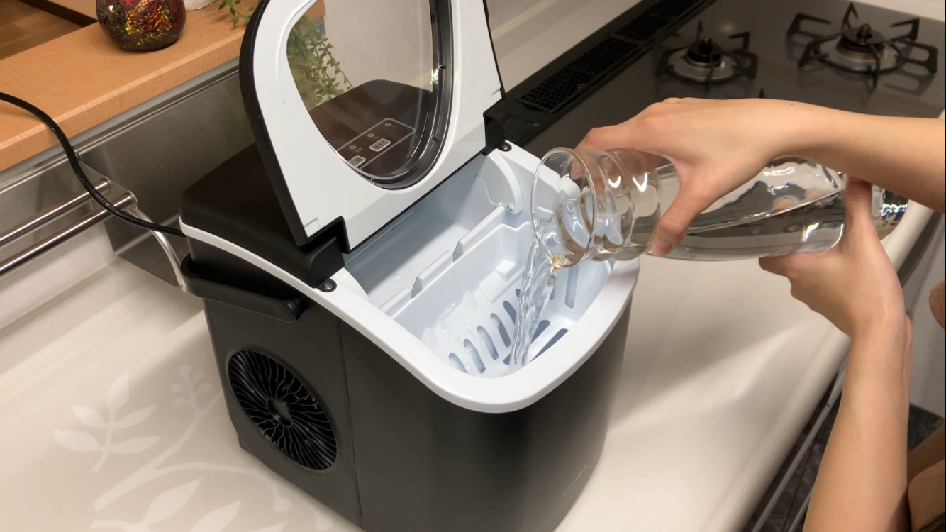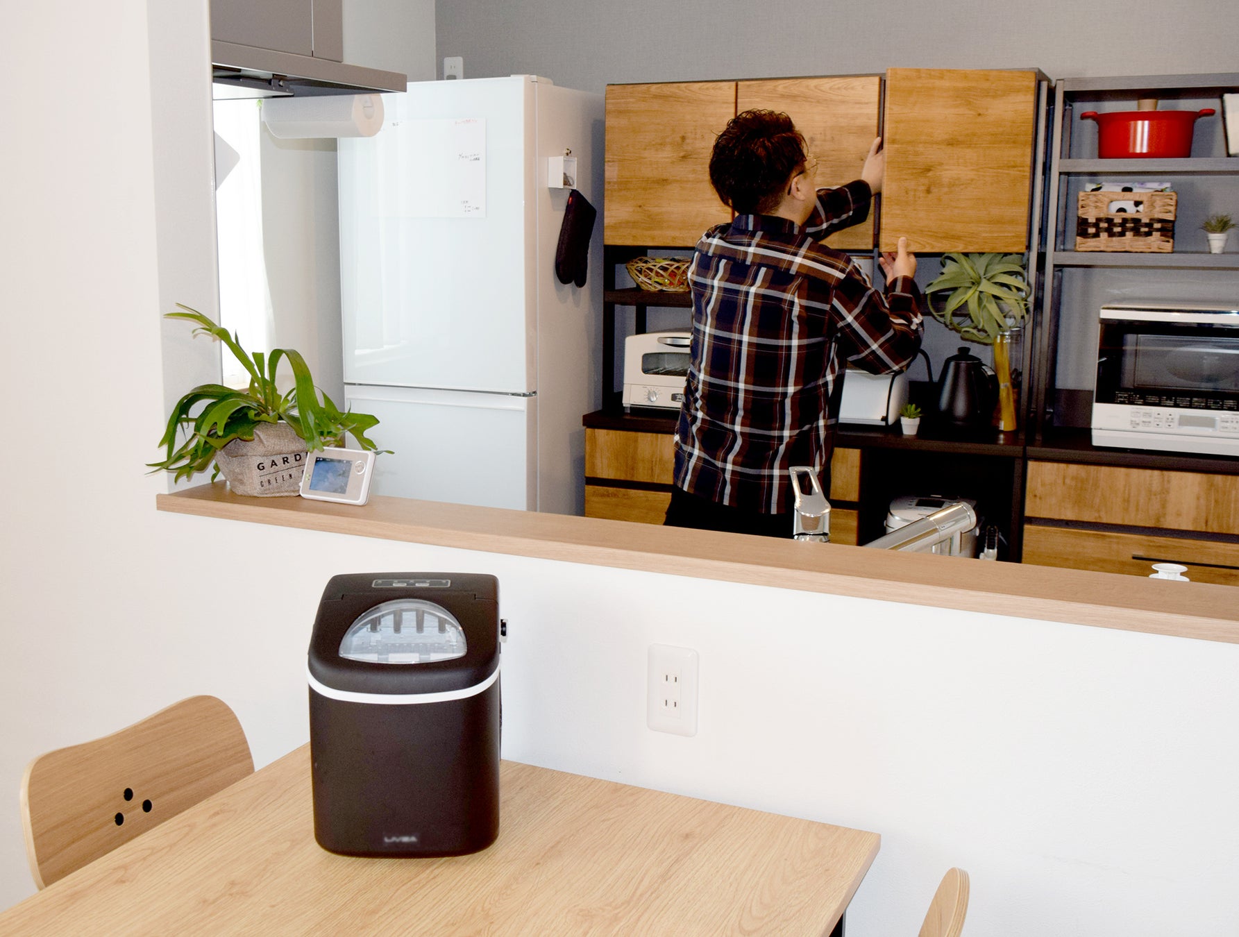 タンクに水を入れてボタンを押すだけの簡単操作で、最短約6分後には氷が完成します。冷凍庫より圧倒的に早く、来客時や調理中など「今すぐ欲しい!」という場面で大活躍します。