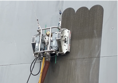 船舶は、船体の腐食防止やフジツボ付着による航行速度低下・燃費低下を防ぐため、定期的にドック入りし、船体の塗装剥離・再塗装を行っている。塗装剥離方法は、古くからサンドブラスト工法が利用されてきたが、粉じんによる環境汚染・健康リスクへの懸念が課題であった。このため近年は、粉じん発生がなく、環境負荷の少ないウォータージェットによる塗装剥離を導入する事例が増えている。このような需要の高まりを受け、当社では、船体に磁力で吸着し、ウォータージェットで塗装剥離、吸引回収が可能な「サーフ・ジェット」を開発した。