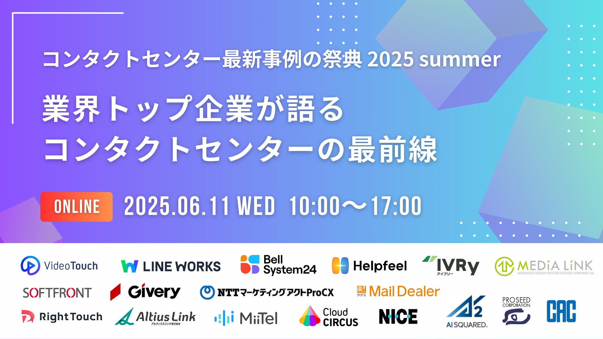 【申込受付中】コンタクトセンター最新事例の祭典 2025 summer「業界トップ企業が語るコンタクトセンターの最前線」|無料オンラインカンファレンス開催のお知らせ