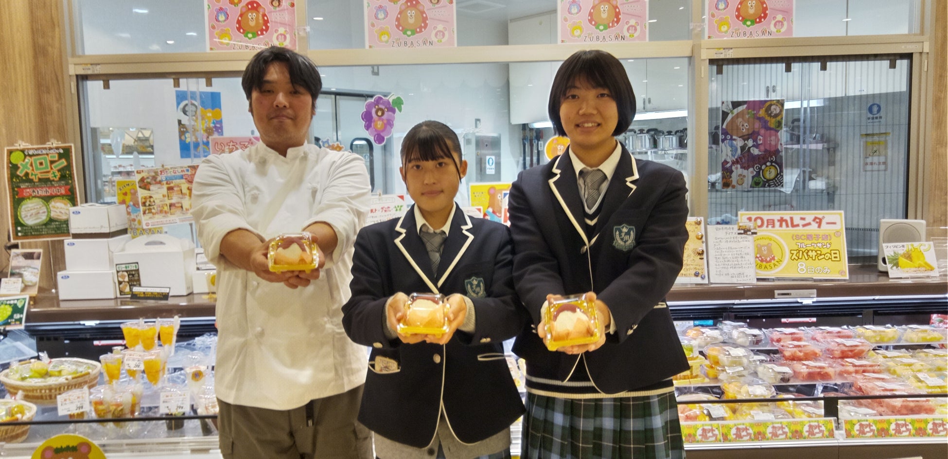 販売初日の令和4年10月19日(水)には、マルトSC平尼子店にてふたば未来学園高校生2名による販売実習を行いました。