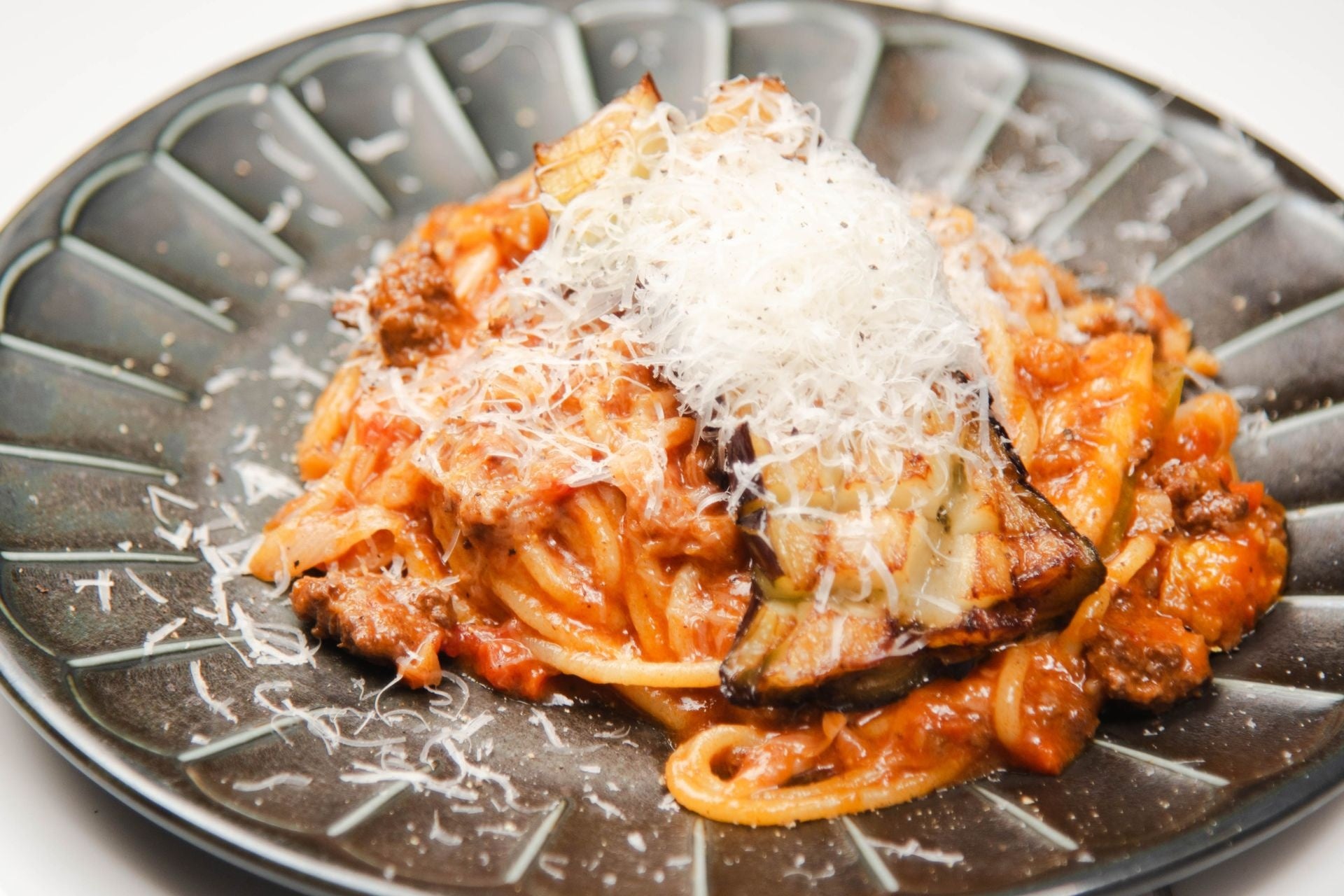 とろけるようにやわらかく、生でも食べられるほど甘い熊本県産赤茄子は、ステーキ風に香ばしくグリル。香味野菜と粗挽き肉、れんこんをじっくり煮込んだ特製ミートソースに、たっぷりとトッピングするのは、さっぱりとしたブラナバーチーズ。食べ応えとヘルシーさがどちらも叶う、野菜が主役のボロネーゼです。