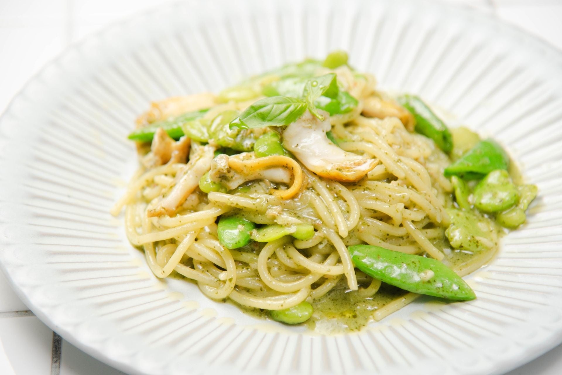つぶ貝と春野菜のバジルジェノベーゼ