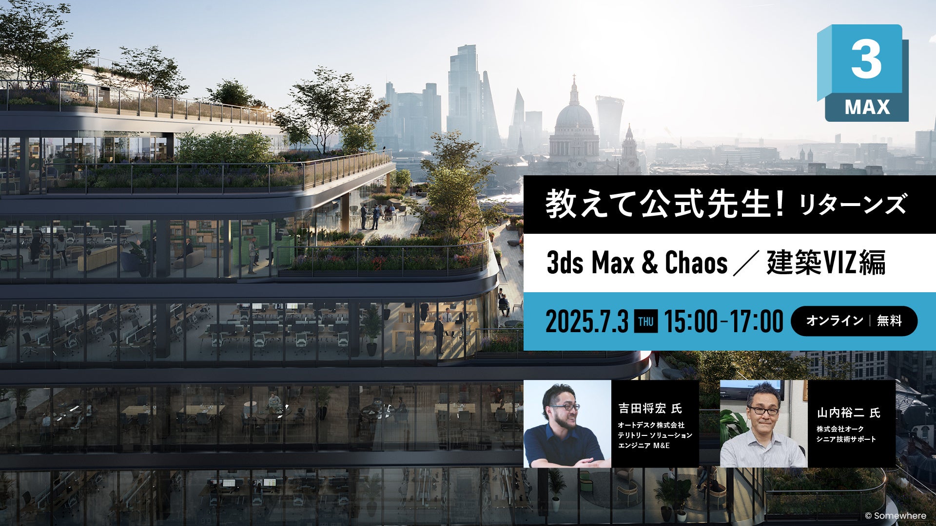 現場の悩みに“公式先生”が答える!建築ビジュアライゼーション分野向け 3ds Max & Chaos製品セミナー【7/3(木)オンライン開催|参加無料】