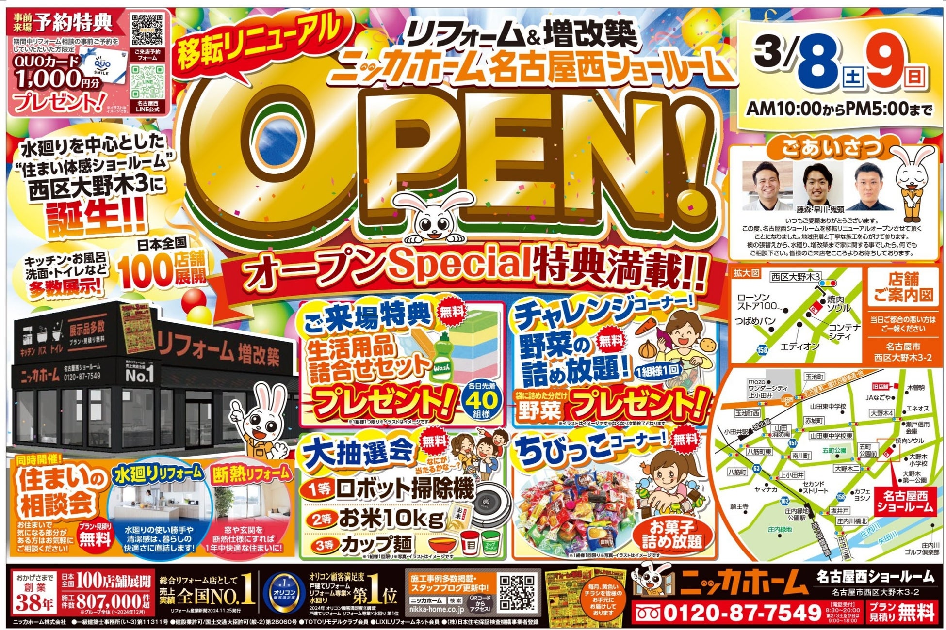 ニッカホーム名古屋西ショールームが、移転リニューアルオープン!