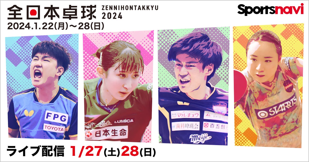 スポーツナビは、1月22日(月)から開催されている「天皇杯・皇后杯2024年全日本卓球選手権大会」において、1月27日(土)と1月28日(日)の2日間、全27試合をライブ配信いたします。