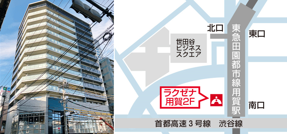 ■アクセス:〒158-0097東京都世田谷区用賀4-5-3 ラグゼナ用賀2F(田園都市線 用賀駅徒歩1分)