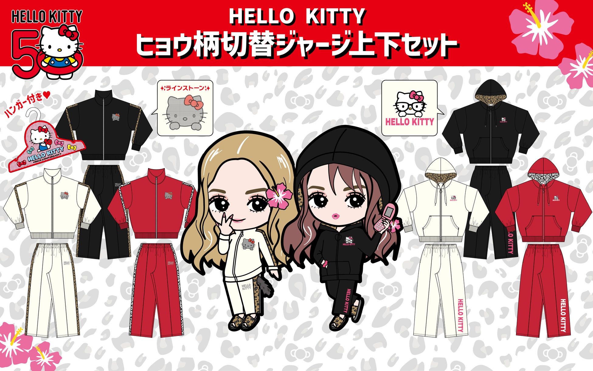 チラ見えするヒョウ柄やキラキラのラインストーンが平成ギャルを彷彿とさせるハローキティ50th限定ジャージ♡うれしい上下セットアイテム&オリジナルハンガー付きで、お買い得感も満載です!