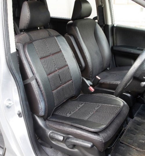 今回発売する「サポートダブルクッション」は、背面から座面までをカバーすることで運転中の体の負担を軽減。表面にはメッシュ素材を使用しており、熱がこもらず汗によるムレを防ぎます。価格も1,590円とお求めやすい価格を実現しました。