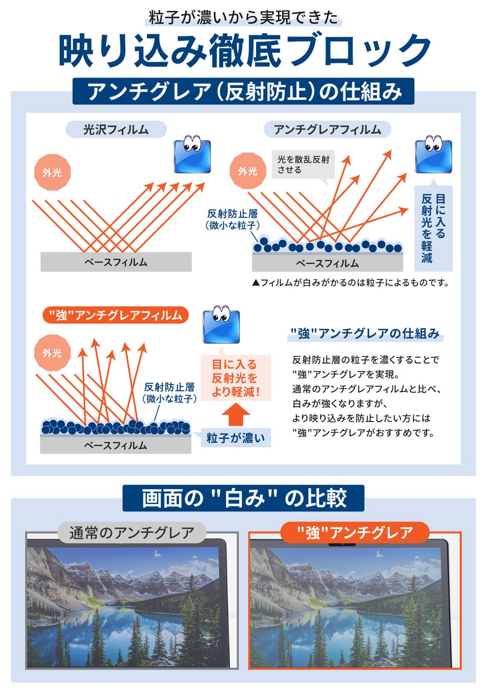 さらに上をいく映り込み防止効果「強アンチグレア」