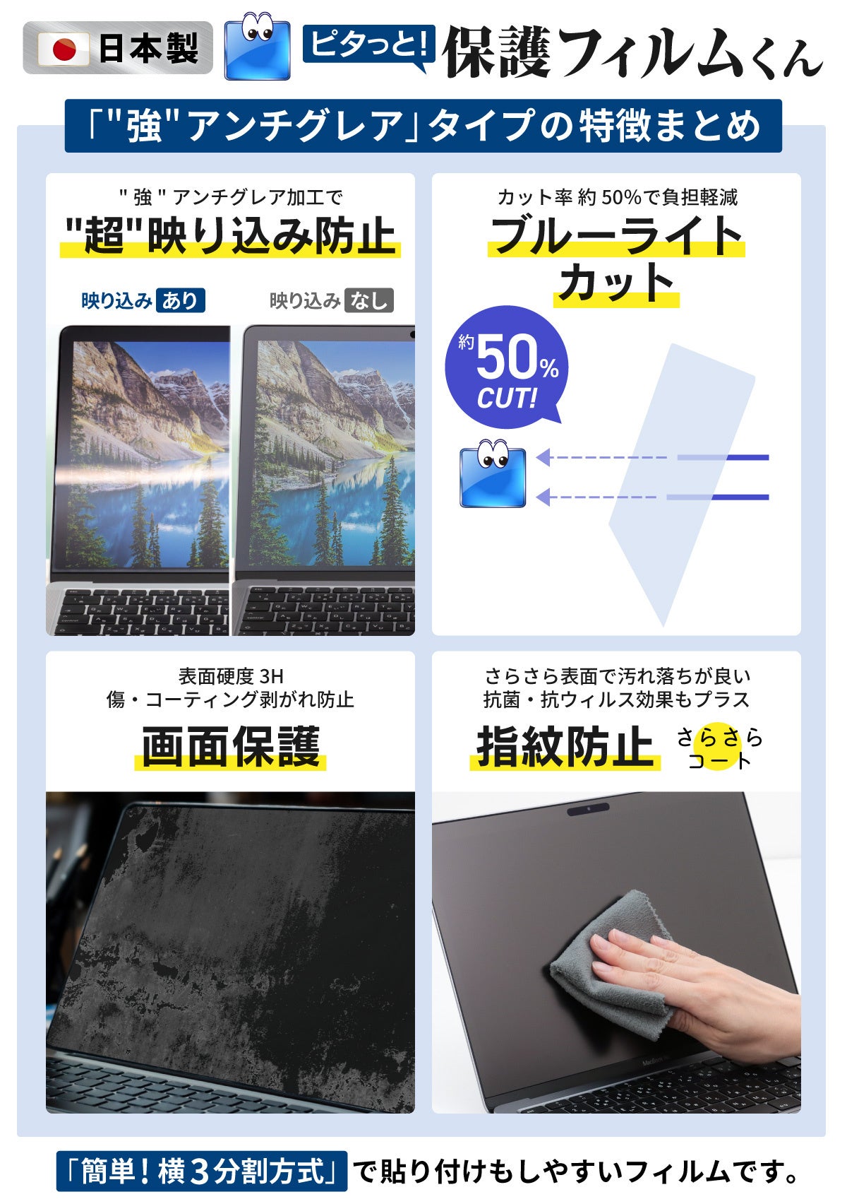 「ピタっと!保護フィルムくん MacBook用 強アンチグレア」の特徴