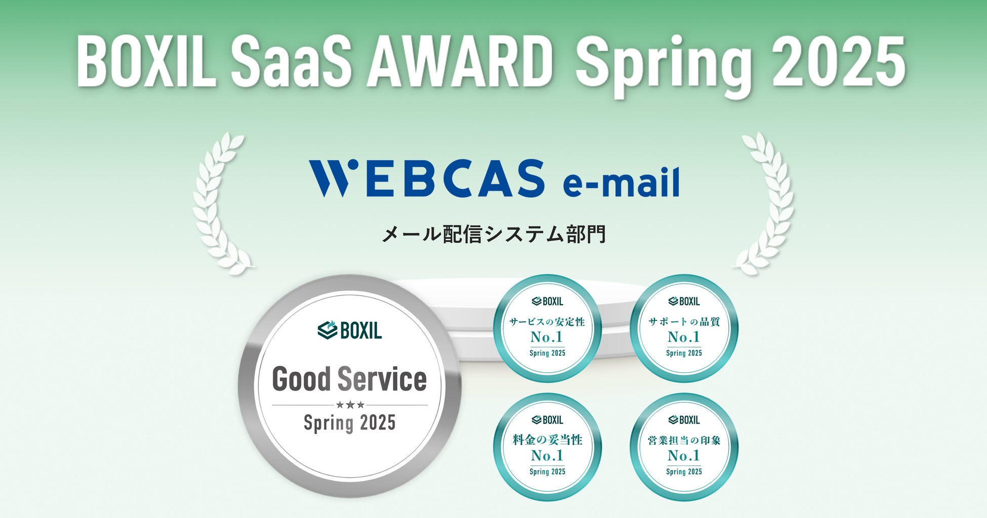 SaaSの開発・提供を通して企業や団体のCX向上を支援する株式会社WOW WORLD(ワオワールド/本社:東京都品川区、代表取締役社長:美濃 和男、以下、当社)は、スマートキャンプ株式会社(以下、スマートキャンプ)が今最も評価されているSaaS(※1)を表彰する「BOXIL SaaS AWARD 2025」BOXILセクションのメール配信システム部門おいて、当社の提供するメール配信システム「WEBCAS e-mail(ウェブキャス イーメール)」が1位を受賞したことをお知らせいたします。また、同日に発表された「BOXIL SaaS AWARD Spring 2025」で、メール配信システム部門の「Good Service」ほか4つのNo.1を獲得いたしました。