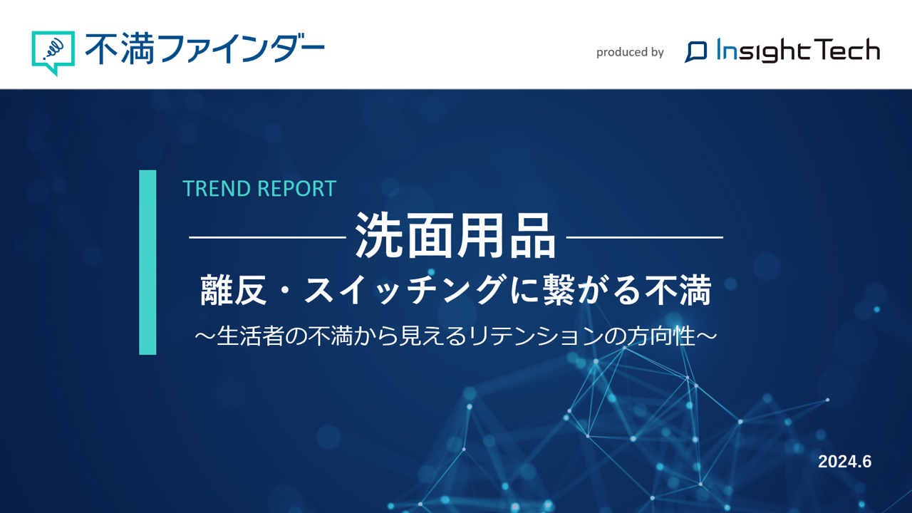 株式会社 Insight Tech(東京都新宿区、代表:伊藤友博、以下 Insight Tech)は、同社が運営する『不満買取センター』に寄せられた洗面用品不満を『不満ファインダー』を用いて解析・考察したレポートを公開しました。