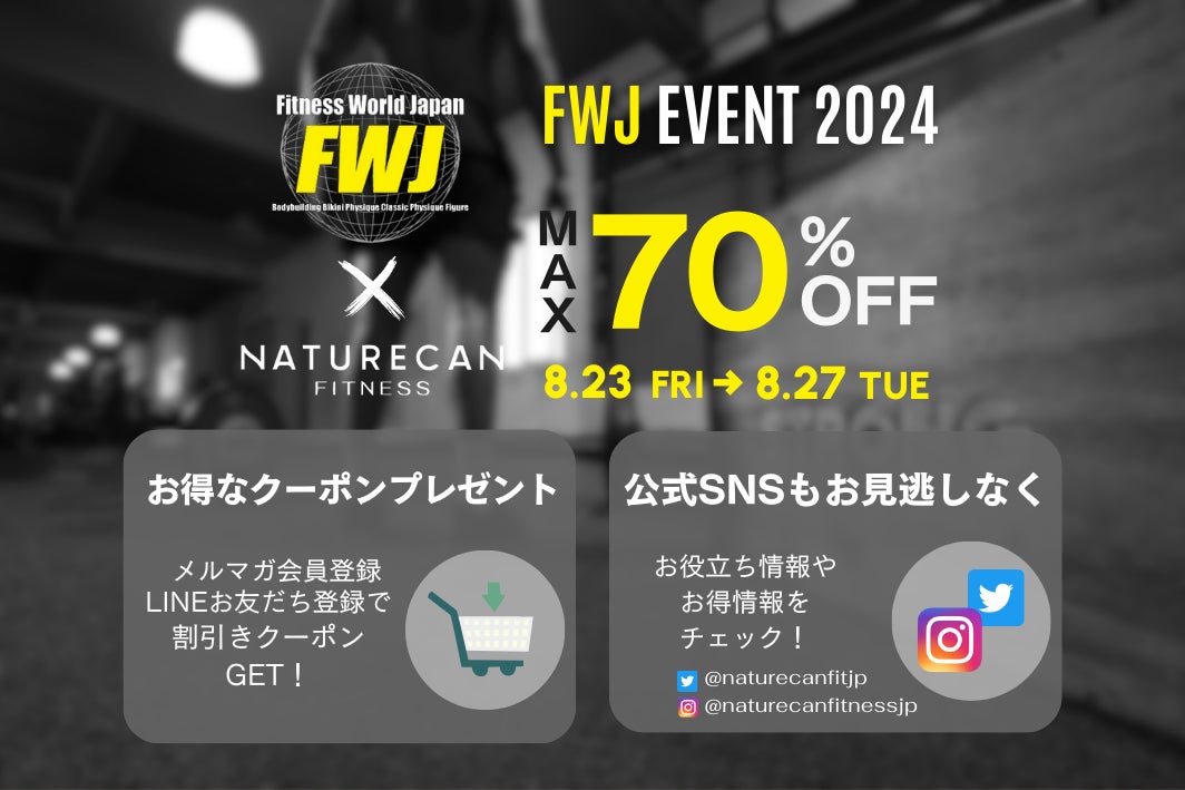 ・FWJ開催記念!NaturecanFitness公式サイトではFWJセールを8/23(金)〜27(火)まで実施
