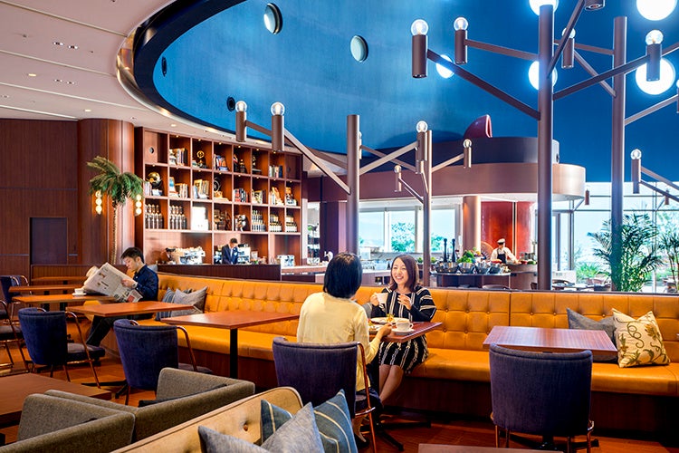 琵琶湖ホテルの2階ロビーフロアにある開放的な空間でお寛ぎいただけるカフェスペース。ホテルメイドのケーキやスイーツ、香り高いコーヒーや紅茶などをおたのしみいただけます。ご当地スイーツシリーズのイートイン、テイクアウト販売も行っています。