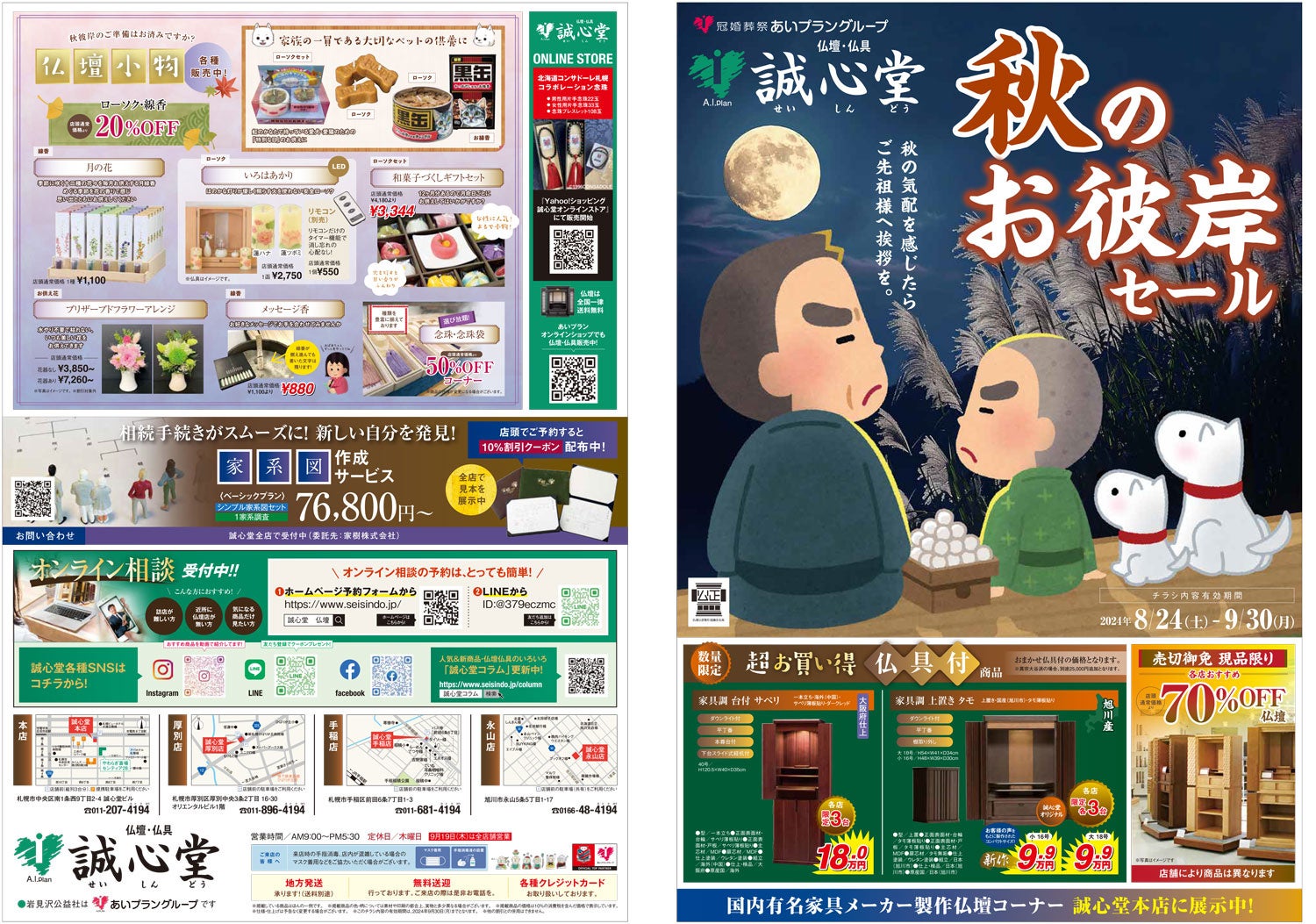 北海道の仏壇・仏具店 誠心堂では、8月24日(土)~9月30日(月)まで秋のお彼岸にあわせてお得なセールを開催。