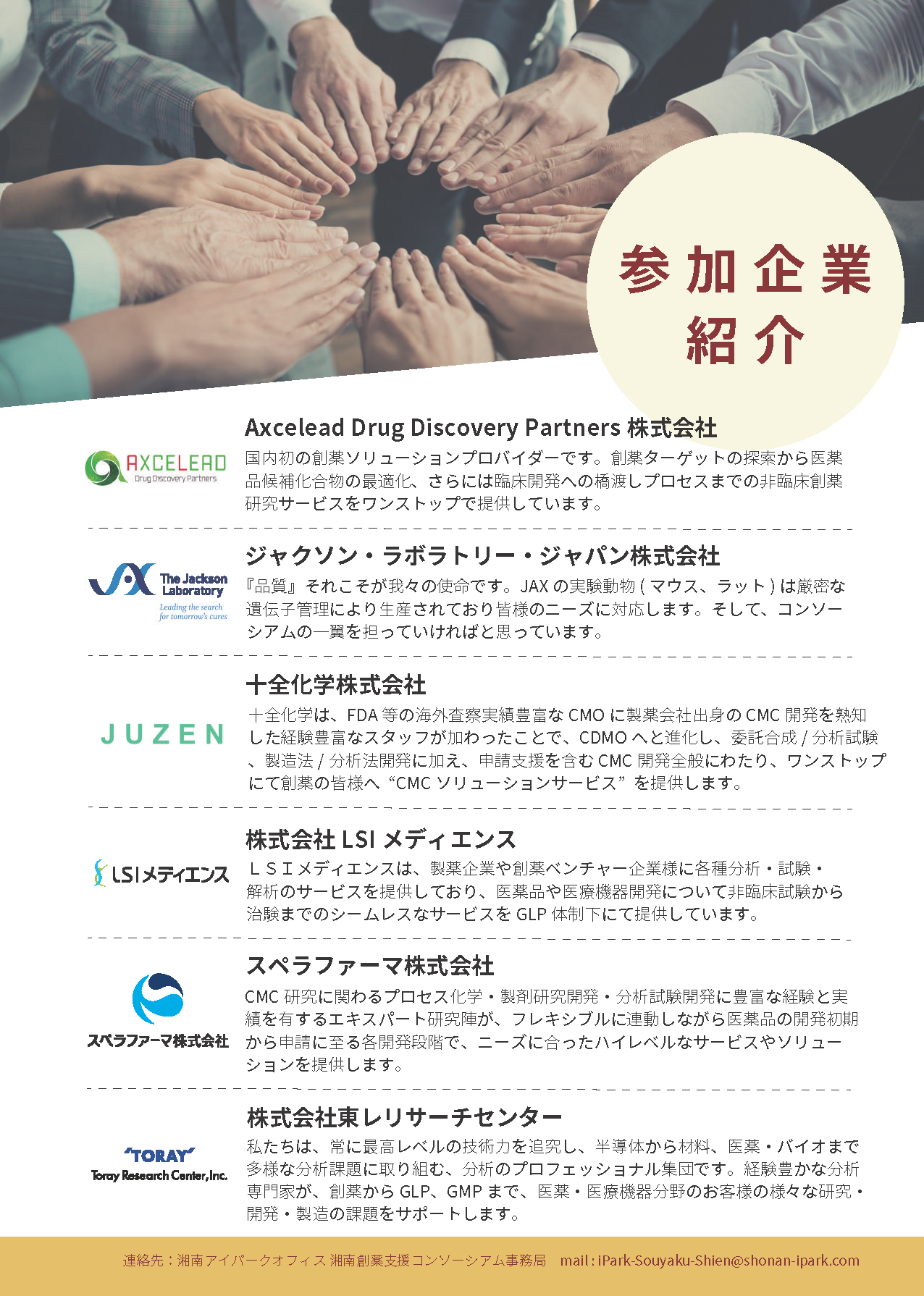 スペラファーマ株式会社(本社:大阪府大阪市、代表取締役社長:岩城 慶太郎)を含む6社は、創薬エコシステムを活性化する枠組みの構築を目指して、ヘルスケアイノベーションが生まれる湘南アイパークで「湘南創薬支援コンソーシアム」の発足に向けた協議を開始しました。