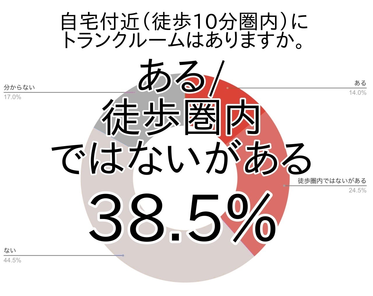 そこでアンケートでは、回答者の自宅付近(徒歩10分圏内)にトランクルームがあるかどうか尋ねました。