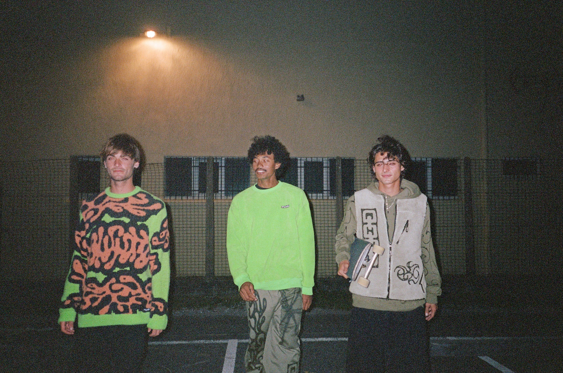 ゼファーのシティーカルチャーとノスタルジーが融合したアートワークがVOLCOMのスウェットやベストなどのアパレルに幅広く表現されています。