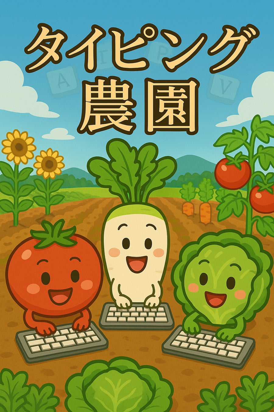 野菜を育てる過程で発生する雑草取りや水やりといった世話を、育てている野菜の名前(例:「じゃがいも」「にんじん」)をタイピングすることで行います。制限時間内に正確にタイピングできれば成功となり、その成功度合いによって野菜の品質や売値が変動。より良い野菜を作り、高値で売ってお金を稼ぐことを目指すゲームです。 -