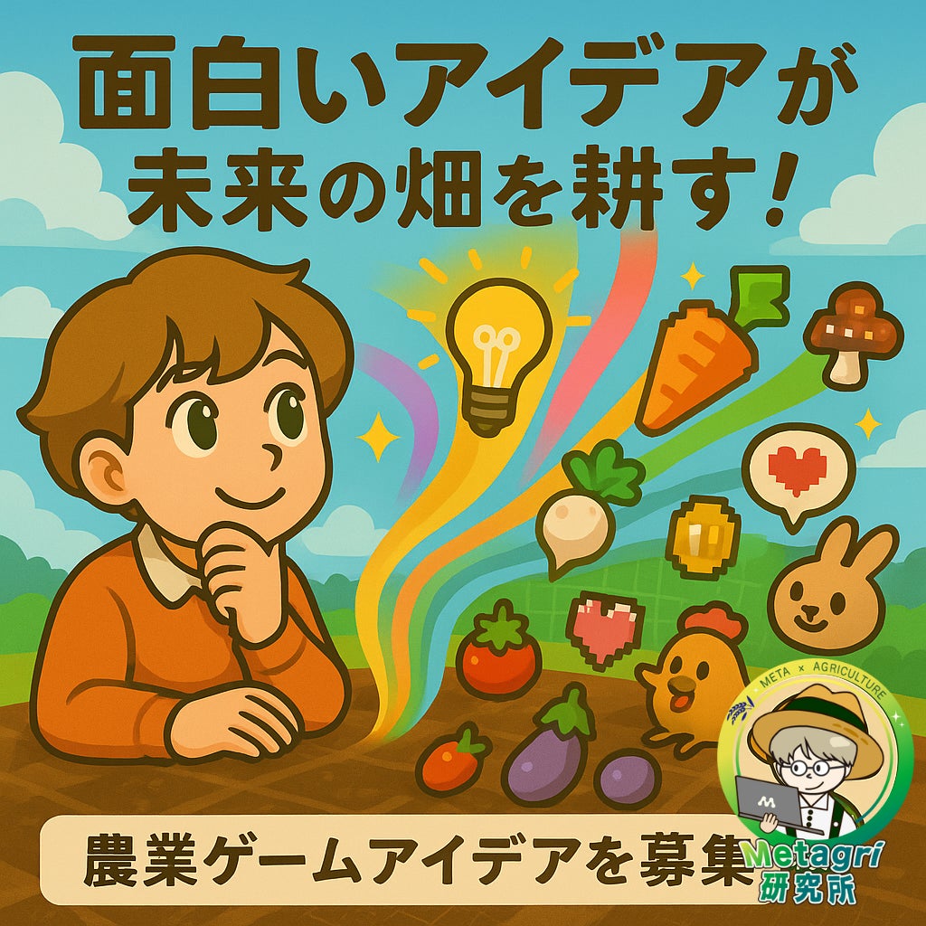 農業×web3を推進するコミュニティ、Metagri研究所(運営:株式会社農情人、本社:千葉県船橋市、代表取締役:甲斐雄一郎)は、2025年5月に開催したこどもの日特別企画「みんなで育てる『農業ゲーム』アイデア畑」の選考結果を発表いたします。全国から寄せられた多数のユニークなアイデアの中から、hako様の「ステキな野菜を作ろう!」(ミニゲーム実装時の名称:「タイピング農園」)が最優秀賞に選ばれました。本アイデアを基に、当研究所のインターン生がPC向けミニゲームとして開発し、2025年6月内の完成・公開を目指します。