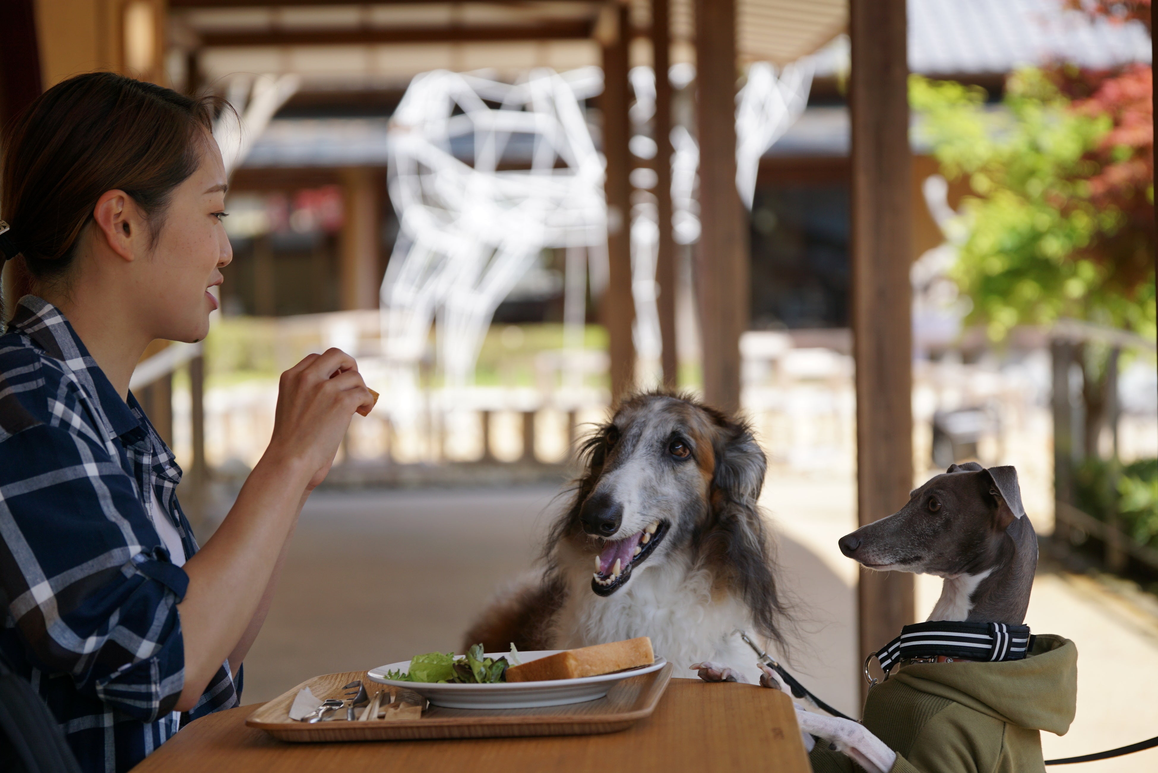 木のぬくもりを感じる落ち着いた店内や、自然を感じることのできるテラス席でゆっくりとしたお時間をお過ごしいただけます。テラス席では、ワンちゃんと一緒にお食事をお楽しみいただけます。