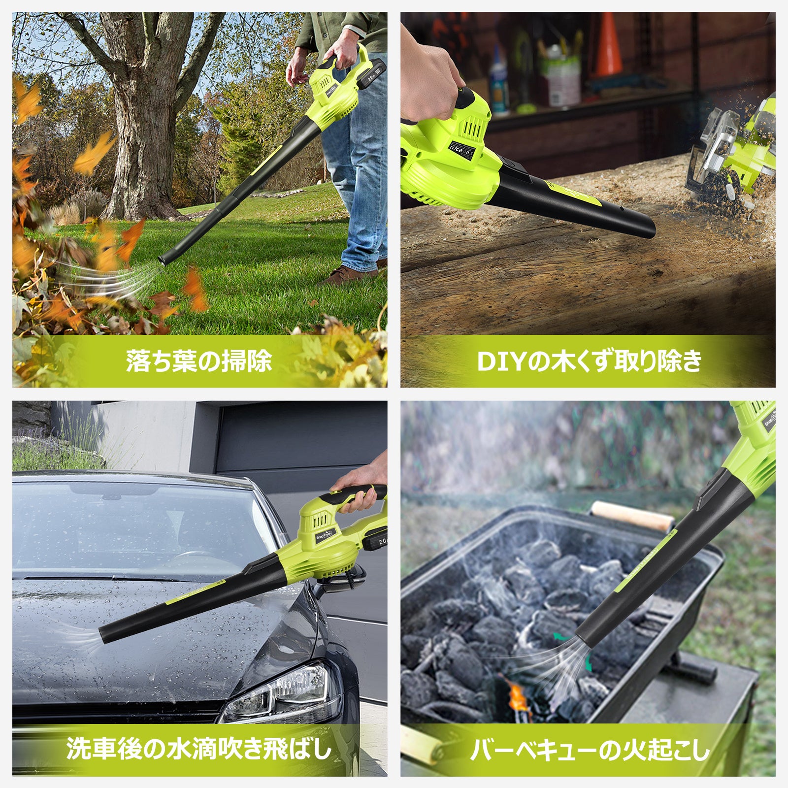- 落ち葉掃除から洗車時の水滴吹き飛ばしまで、幅広い用途に利用できる充電式(コードレス)ブロワー